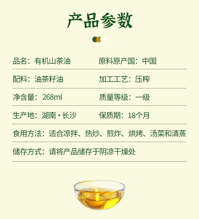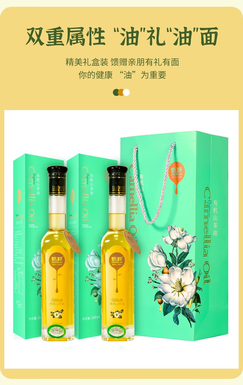 商品名称:(巨邦佑)BJ+甄粹 有机山茶油268ml 纯正茶油有机茶籽油纯食用油茶树油礼盒包装