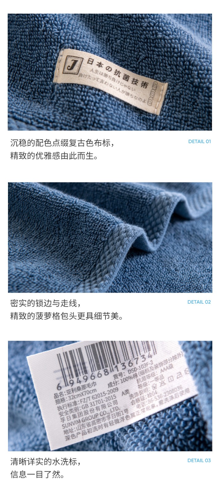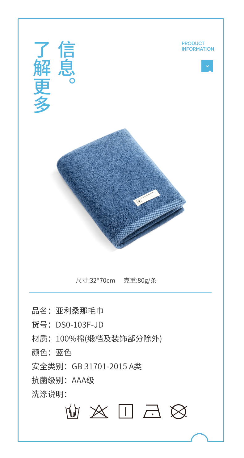 商品名称:(巨邦佑)BJ+洁玉 AAA级抗菌亚利桑那毛巾1条装 DSO-103F-JD 100%棉抗菌厚实