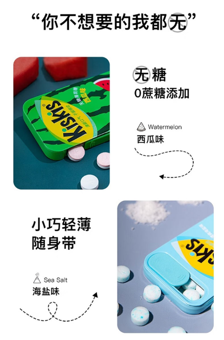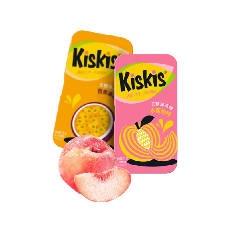 商品名称:(世星阳光)酷滋KisKis 无糖薄荷糖21g*2盒 水蜜桃味+百香果味 清新口气 一颗清凉 唇齿留香 浓缩果汁果味浓郁