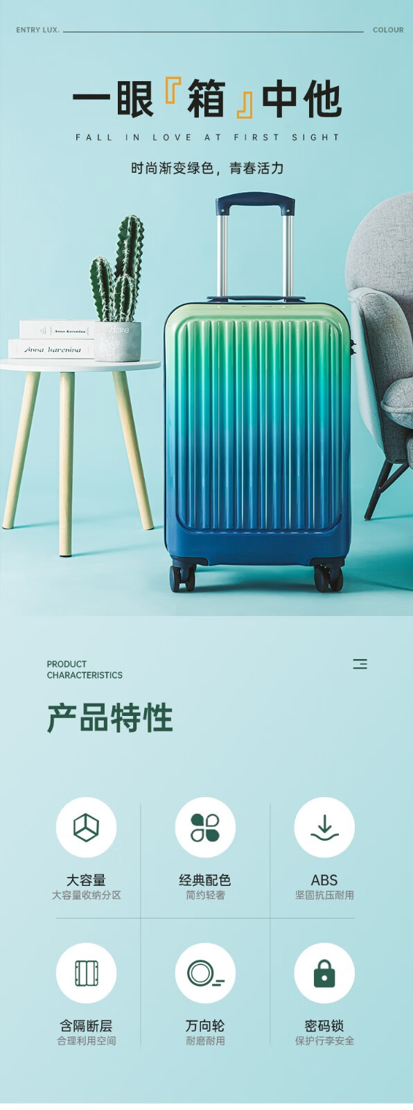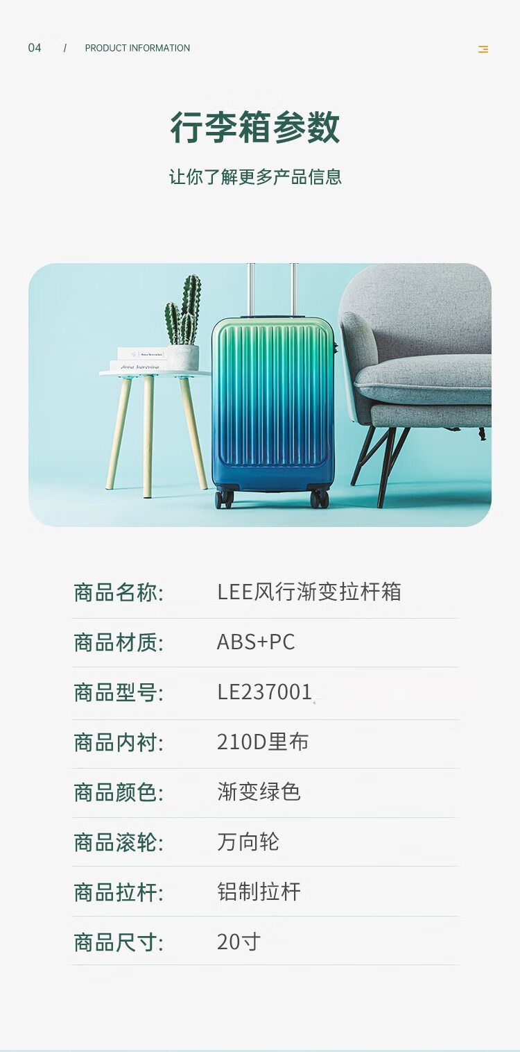 商品名称:(巨邦佑)BJ+LEE 风行渐变拉杆箱20寸 LE237001 行李箱大容量经典配色密码箱含隔断