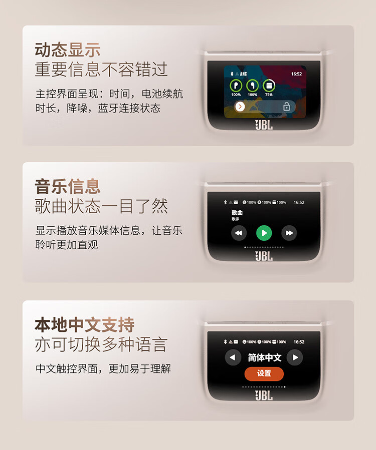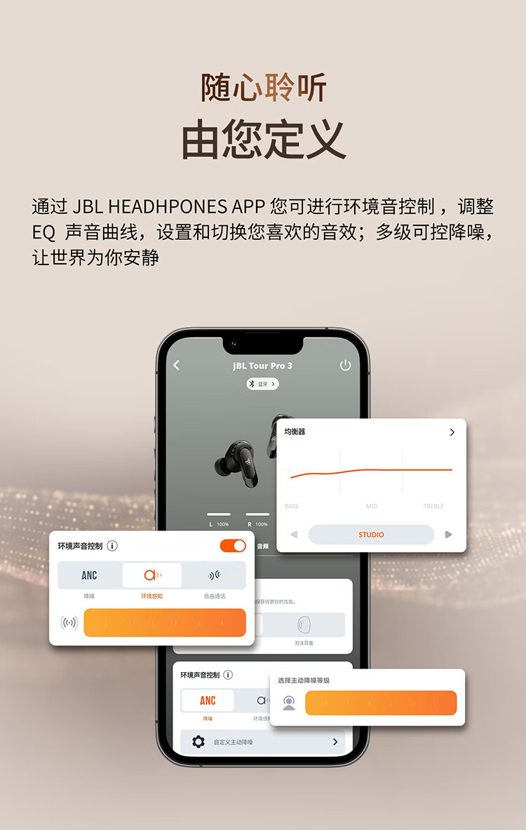 商品名称:(世星阳光)JBL TOUR PRO 3 商务舱3 智能触屏主动降噪真无线音乐运动蓝牙耳机