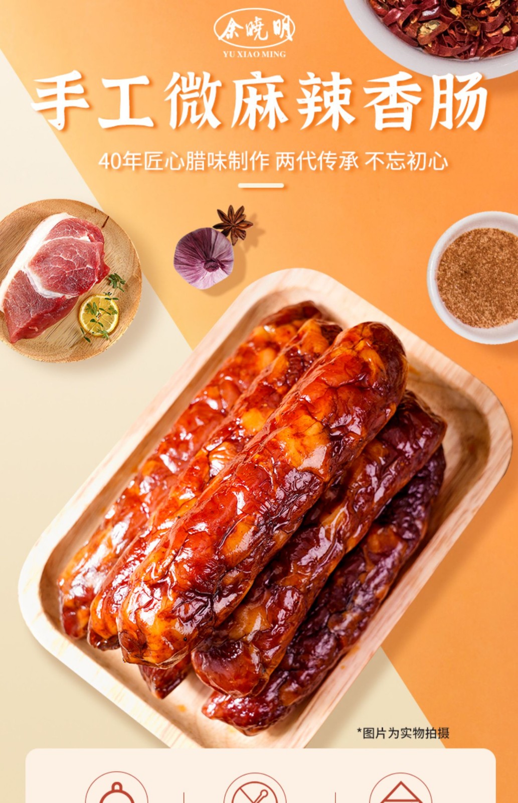 商品名称:(世星阳光)余晓明 特制微麻辣香肠500g(二八肥瘦)心选放心肉严格甄选采购 新鲜猪前夹肉 切片肉不散肉质紧实 肠肉颜色自然红润