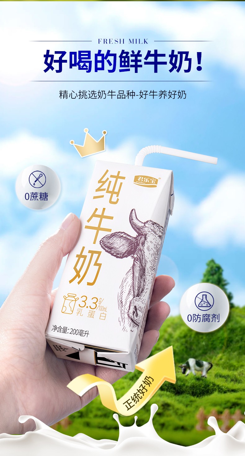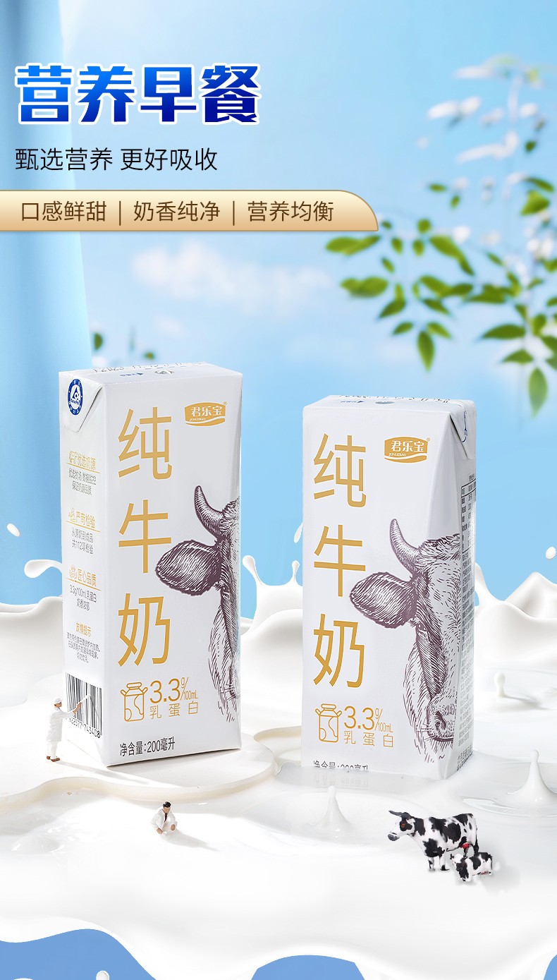 商品名称:(巨邦佑)T+ (yp)君乐宝优选牧场纯牛奶200ml*12 优质奶源 营养早餐