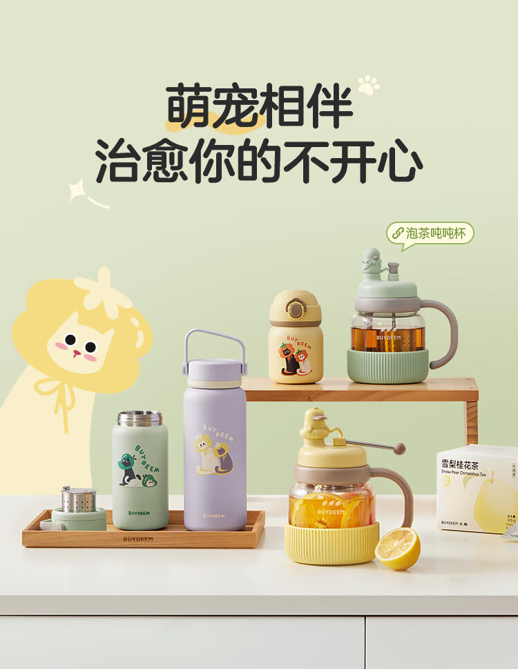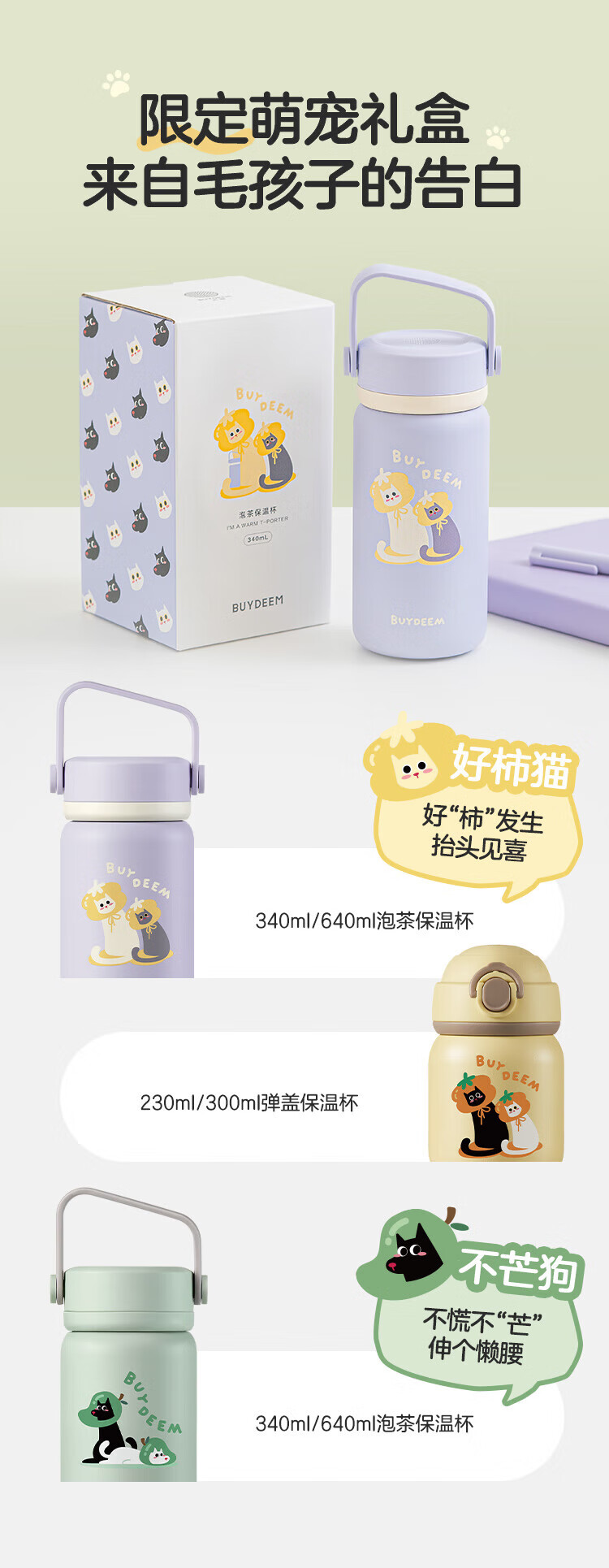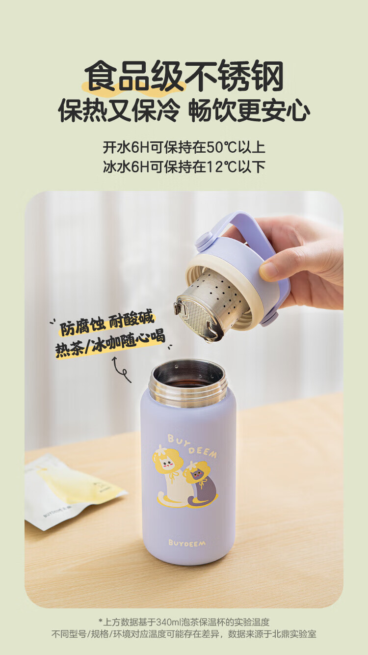 商品名称:(巨邦佑)R+北鼎萌宠保温杯340ML 柿子猫-泡茶保温杯 茶水分离杯 大容量实用水杯 家用高颜值泡茶杯礼物