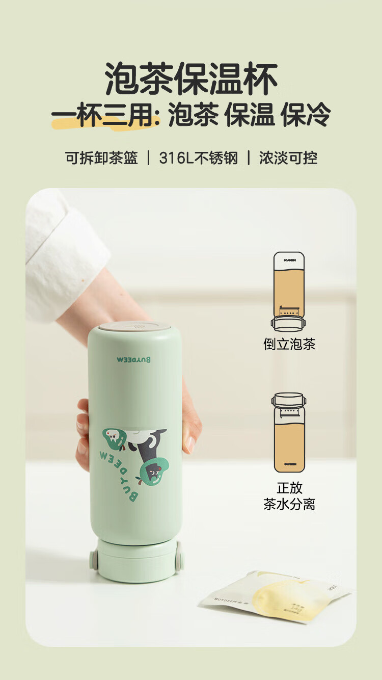 (巨邦佑)R+北鼎萌宠保温杯340ML 柿子猫-泡茶保温杯 茶水分离杯 大容量实用水杯 家用高颜值泡茶杯礼物