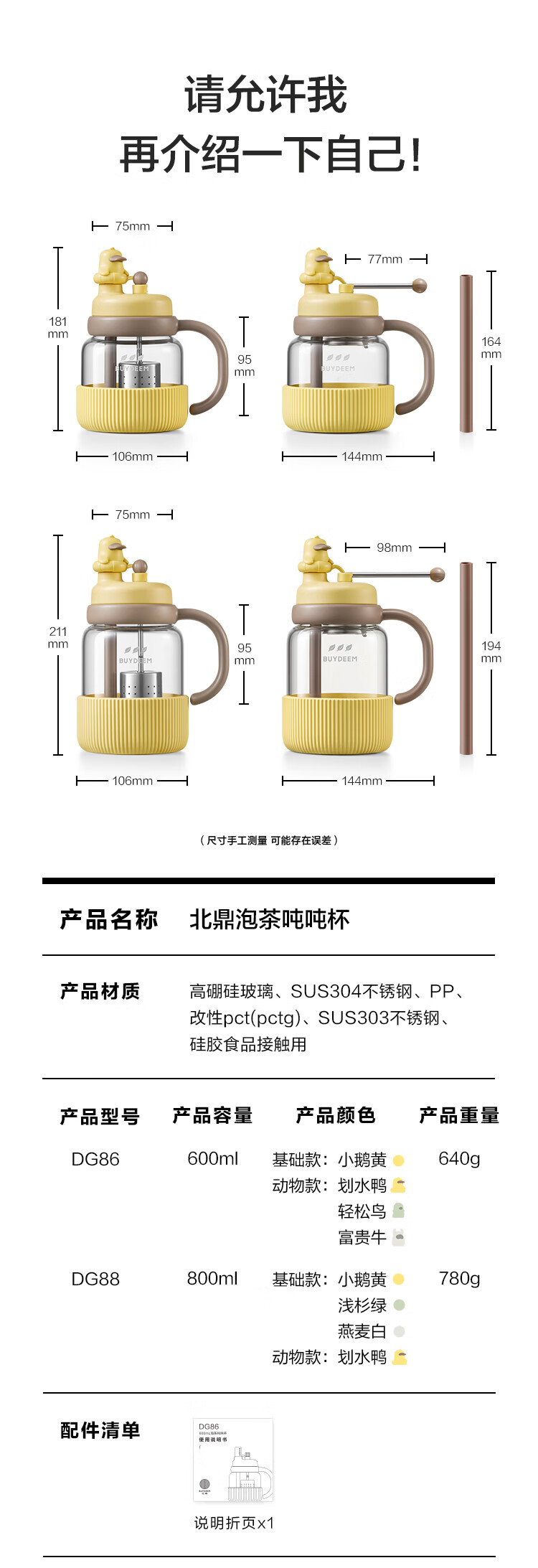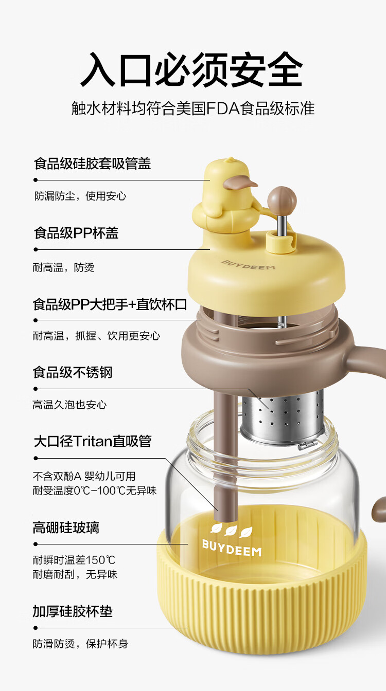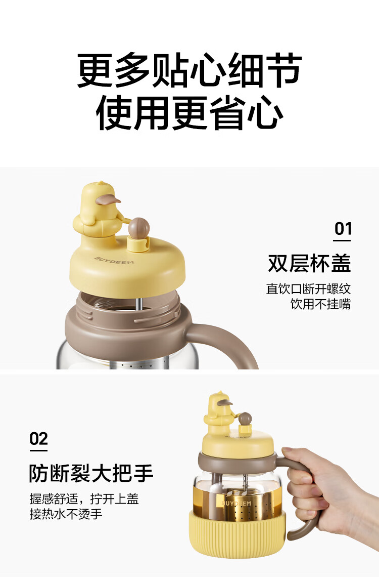 商品名称:(巨邦佑)R+北鼎泡茶吨吨杯600ml 茶水分离水杯 耐高温玻璃杯 便携吸管茶杯礼物 (下单前请备注颜色或联系客服)