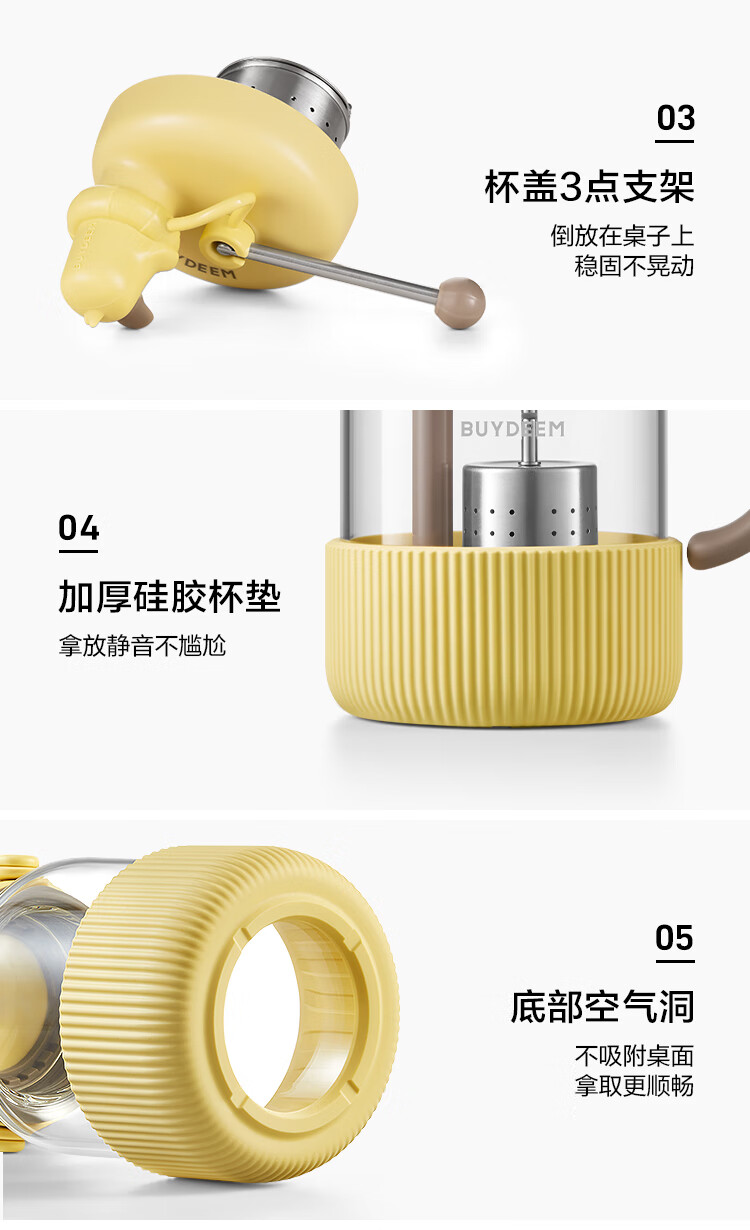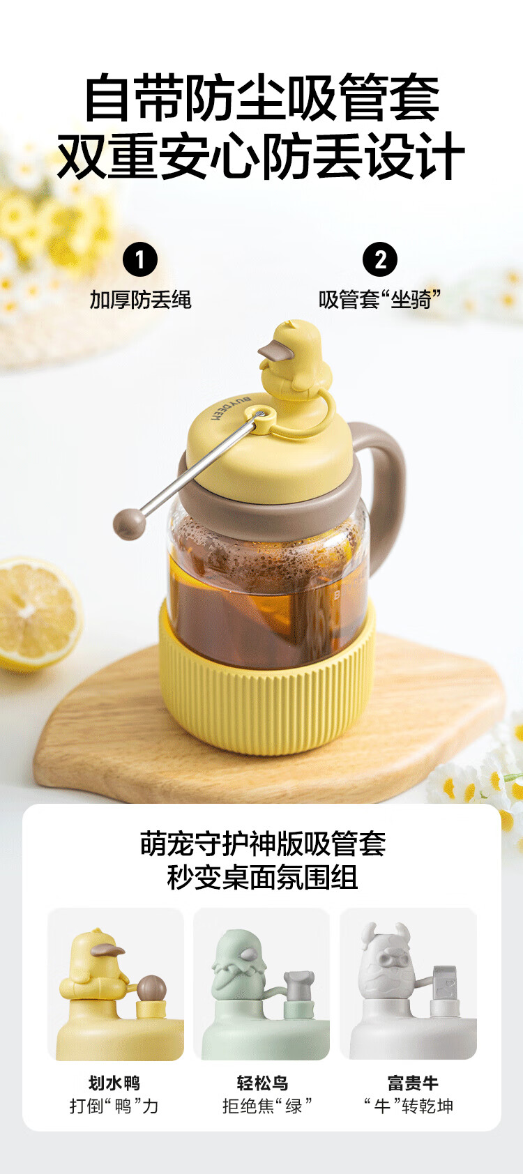 商品名称:(巨邦佑)R+北鼎泡茶吨吨杯600ML划水鸭 茶水分离水杯 耐高温玻璃杯 便携吸管茶杯礼物