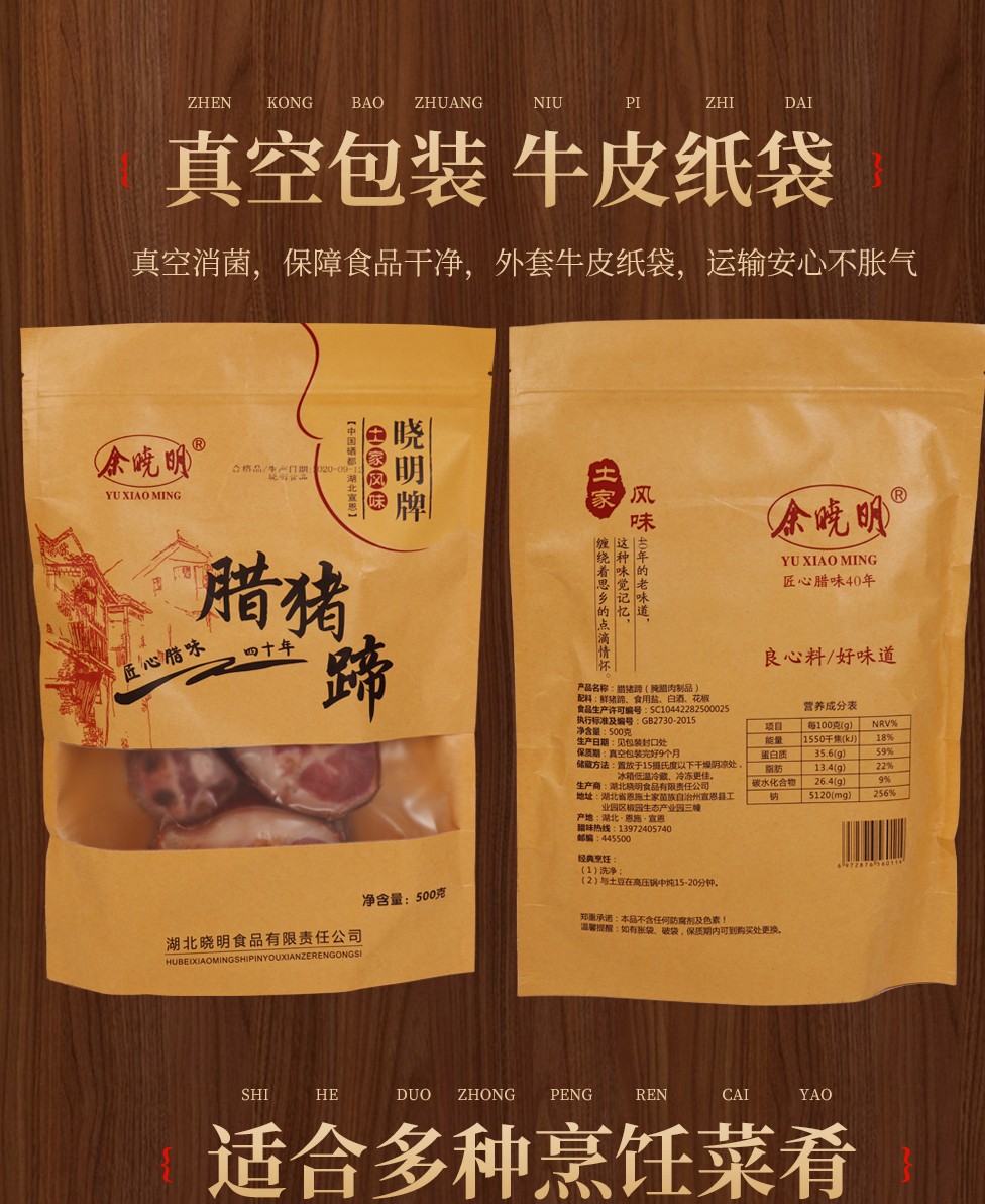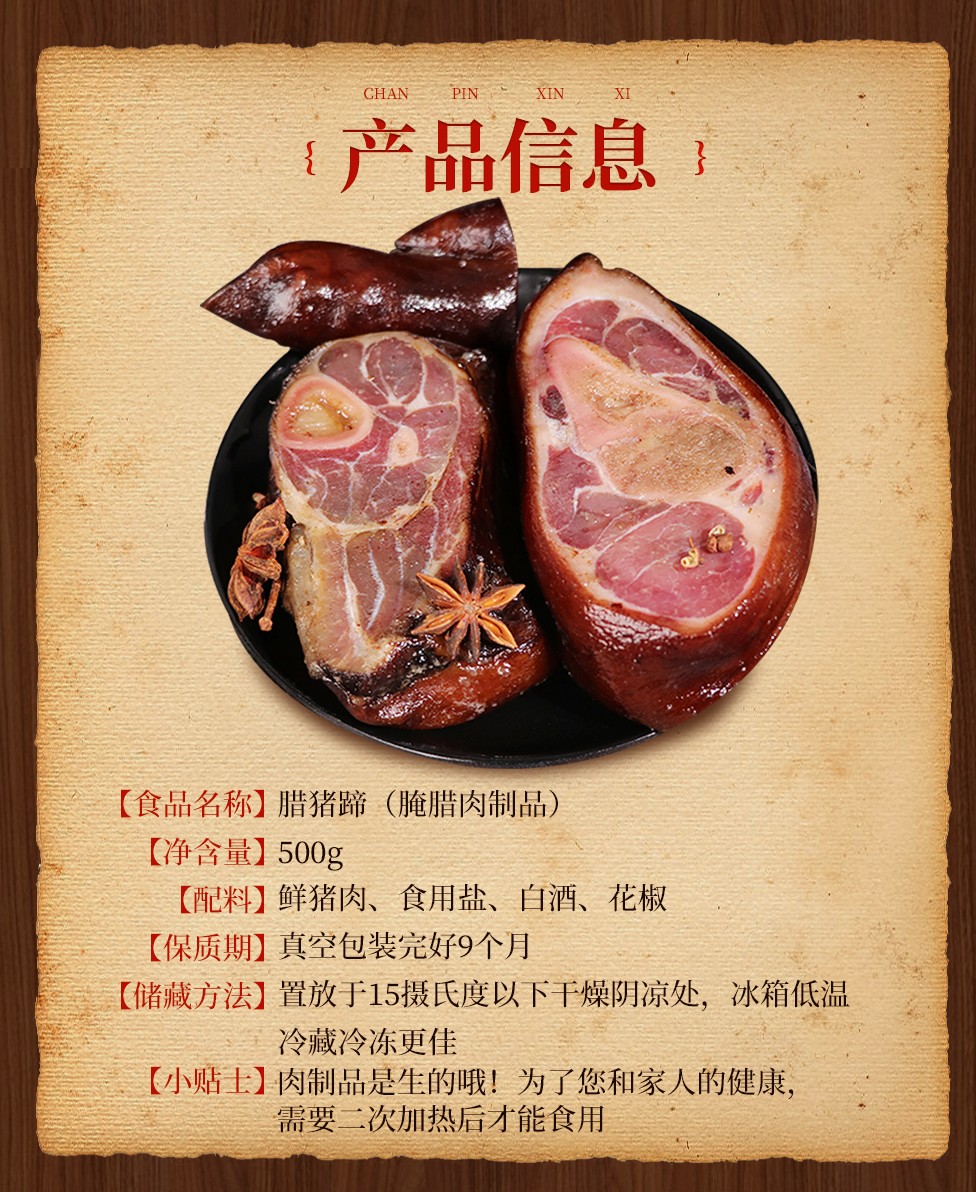 商品名称:(世星阳光)余晓明 腊猪蹄500g 食用安心处理细心 土家工艺传承经典 腊味浓郁 无添加剂