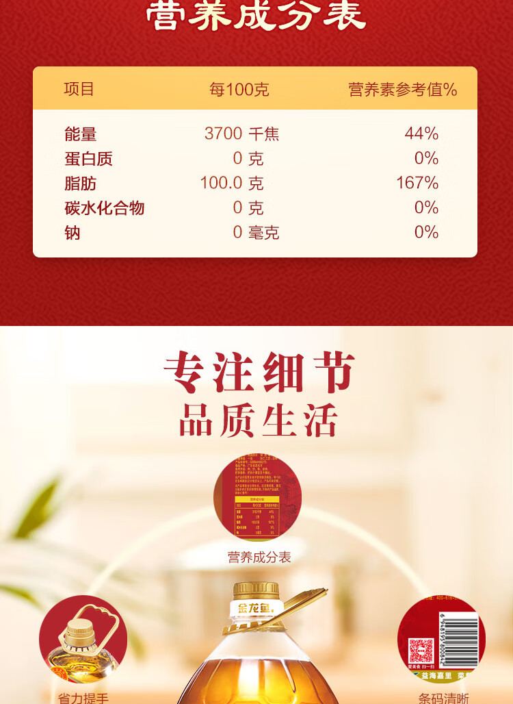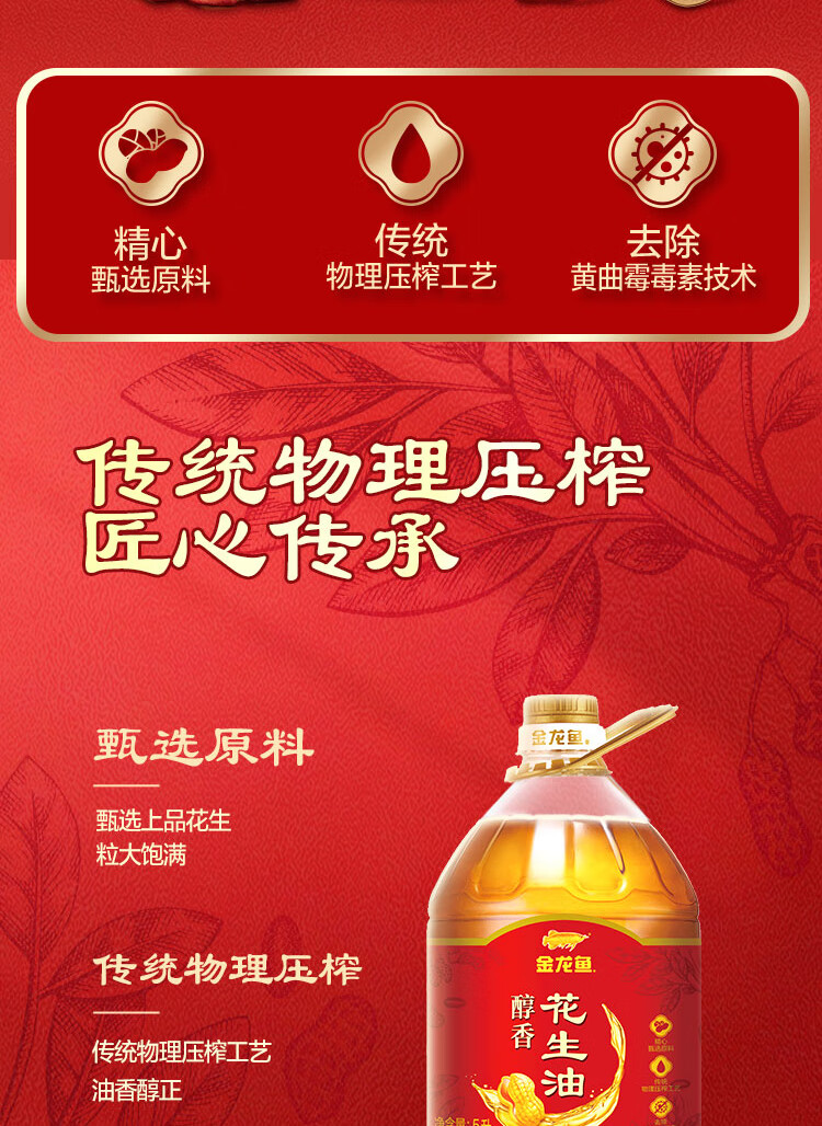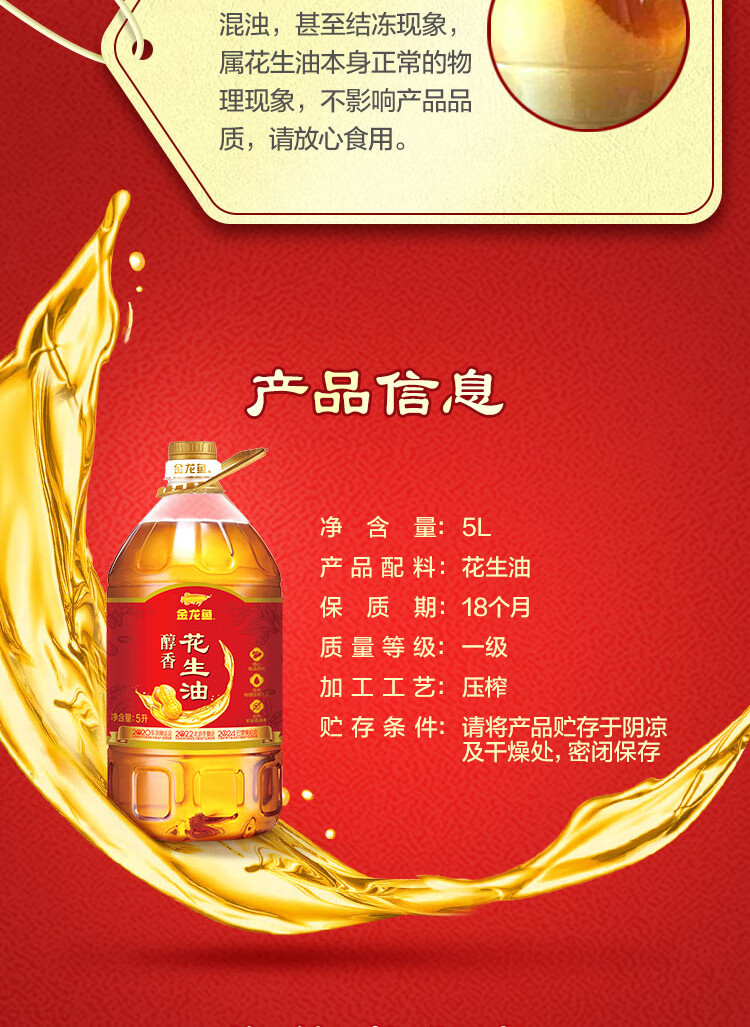 商品名称:(巨邦佑)T+ (yp)金龙鱼醇香花生油压榨 5L 桶装家用物理压榨炒菜食用油