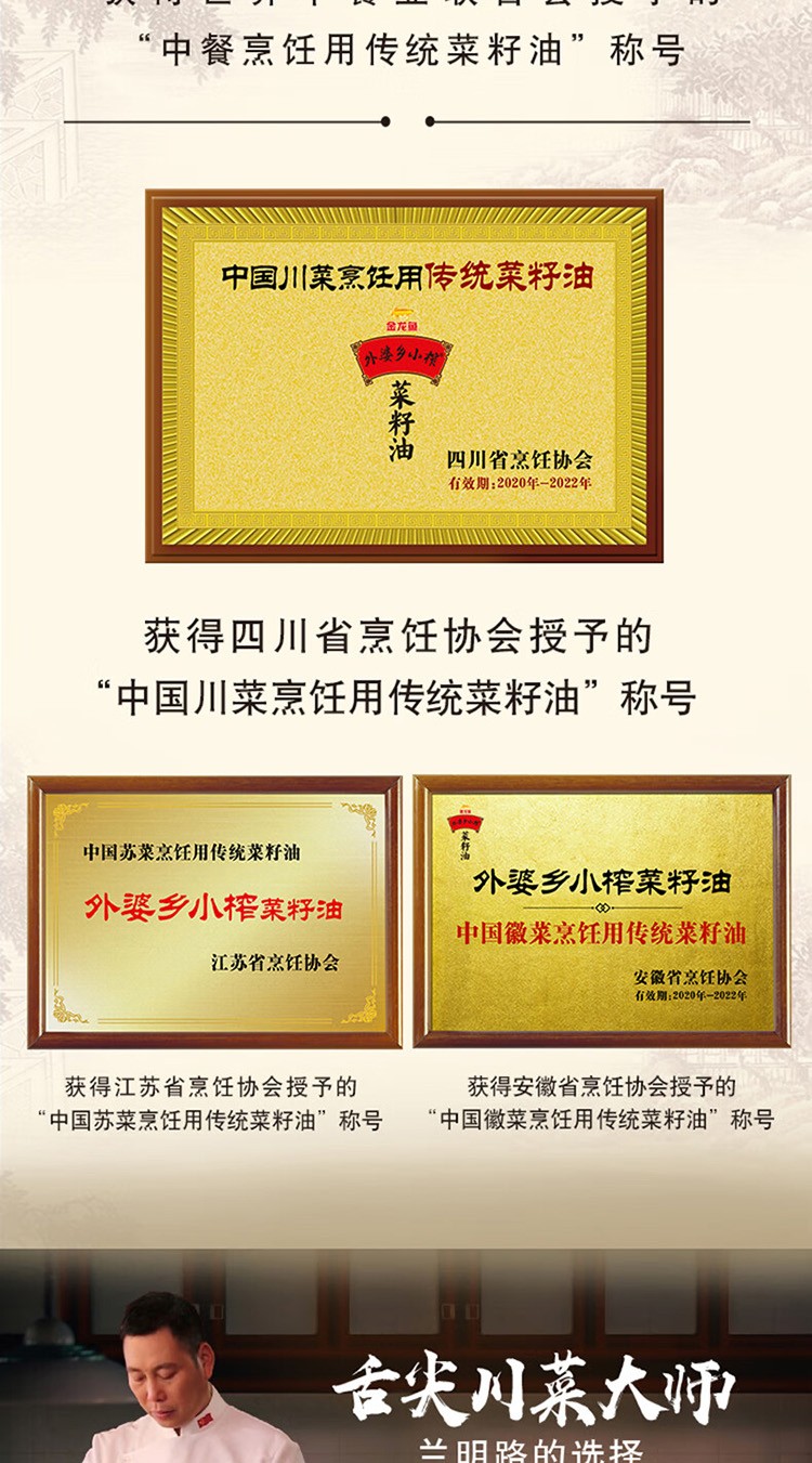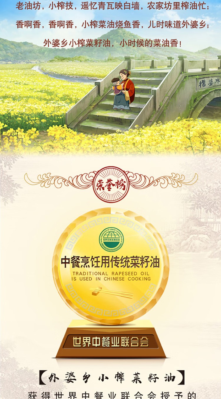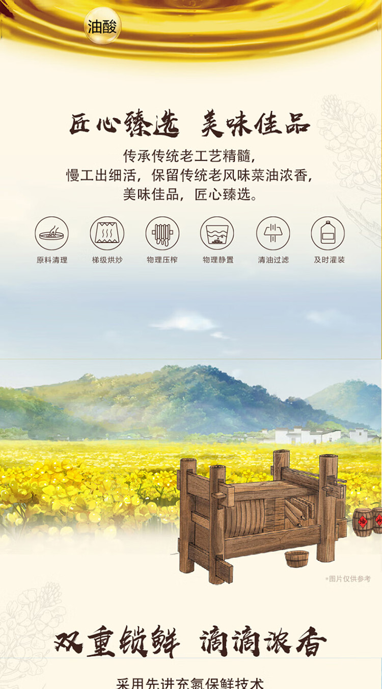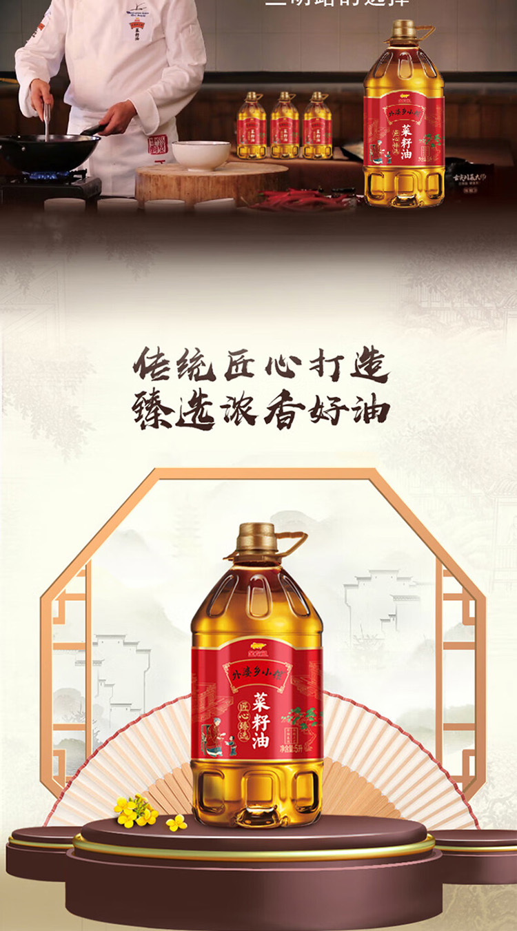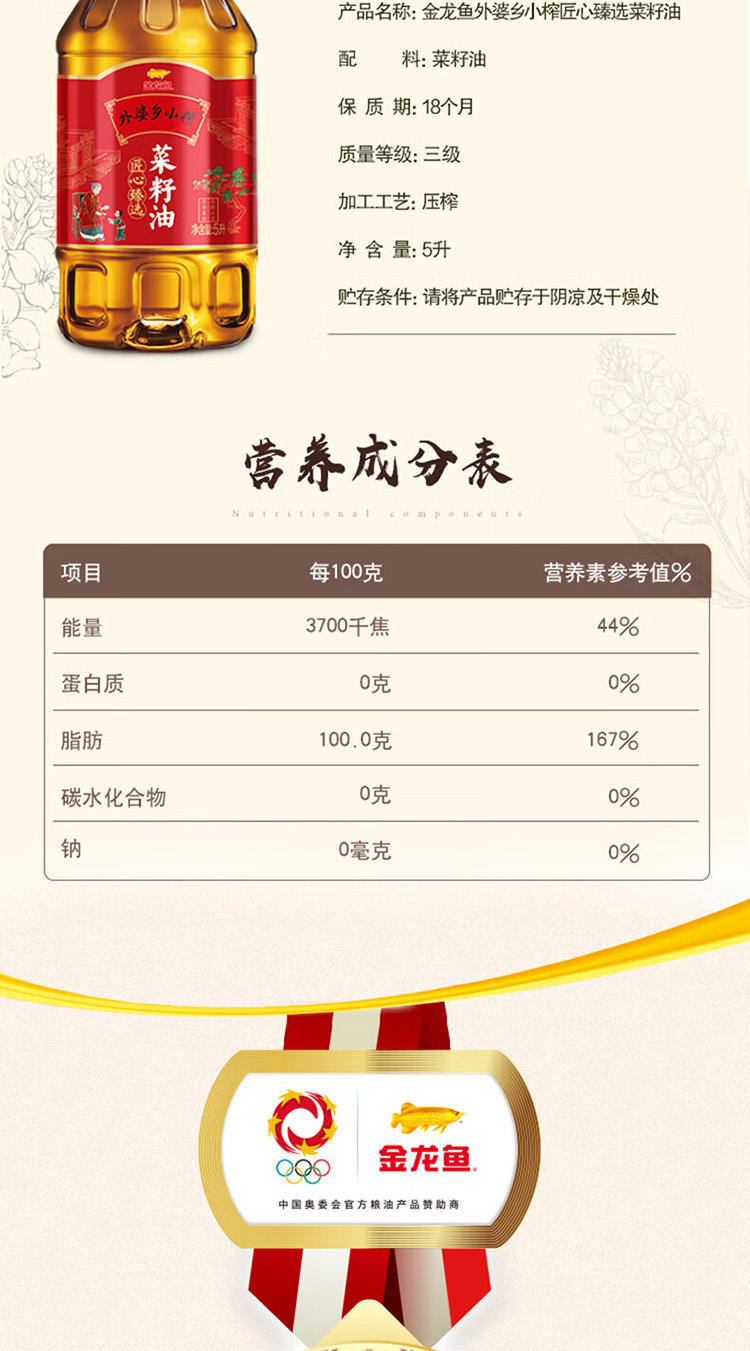 商品名称:(巨邦佑)T+ (yp)金龙鱼外婆乡小榨匠心臻选菜籽油5L 大桶一级压榨食用油