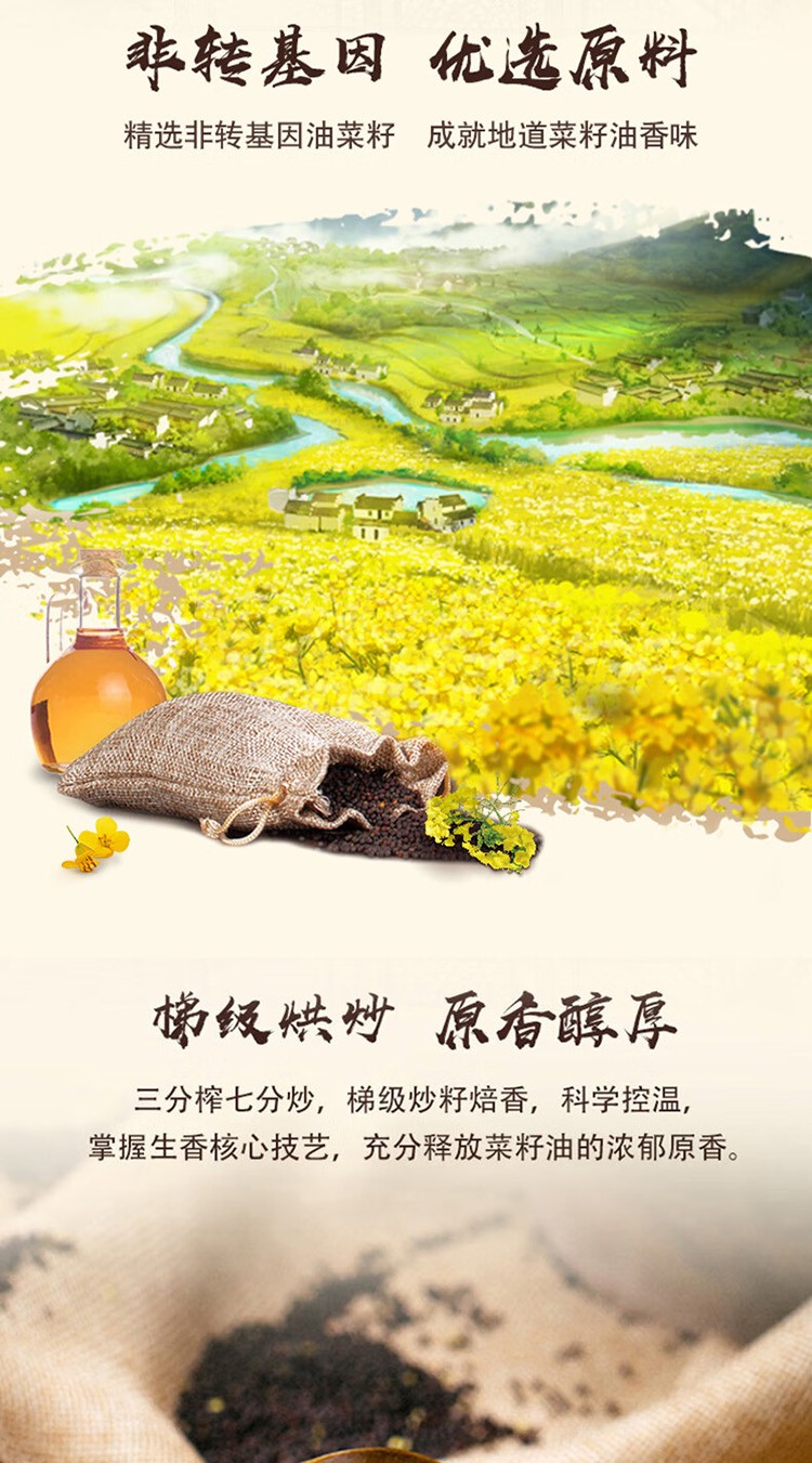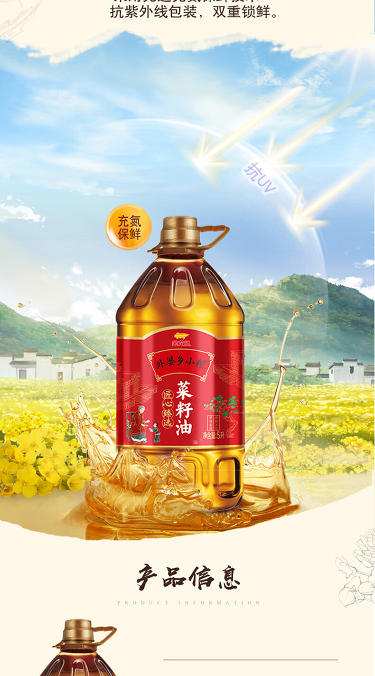 (巨邦佑)T+ (yp)金龙鱼外婆乡小榨匠心臻选菜籽油5L 大桶一级压榨食用油