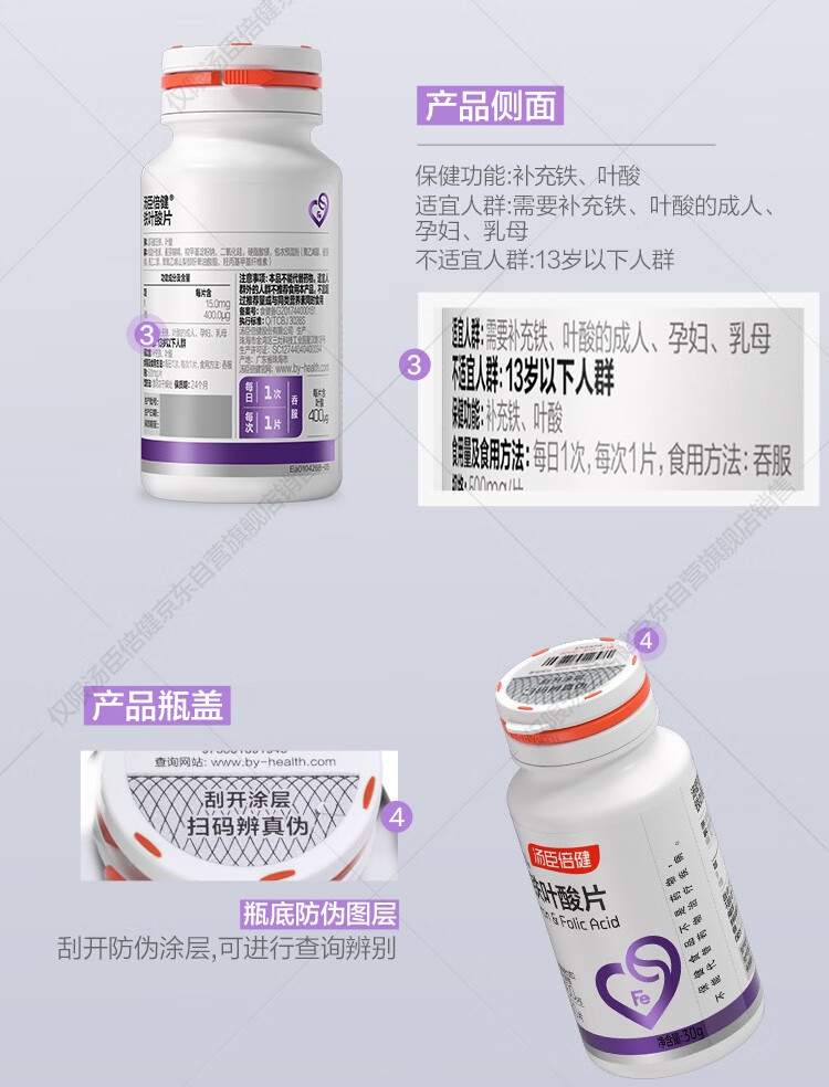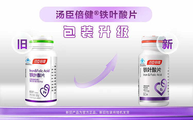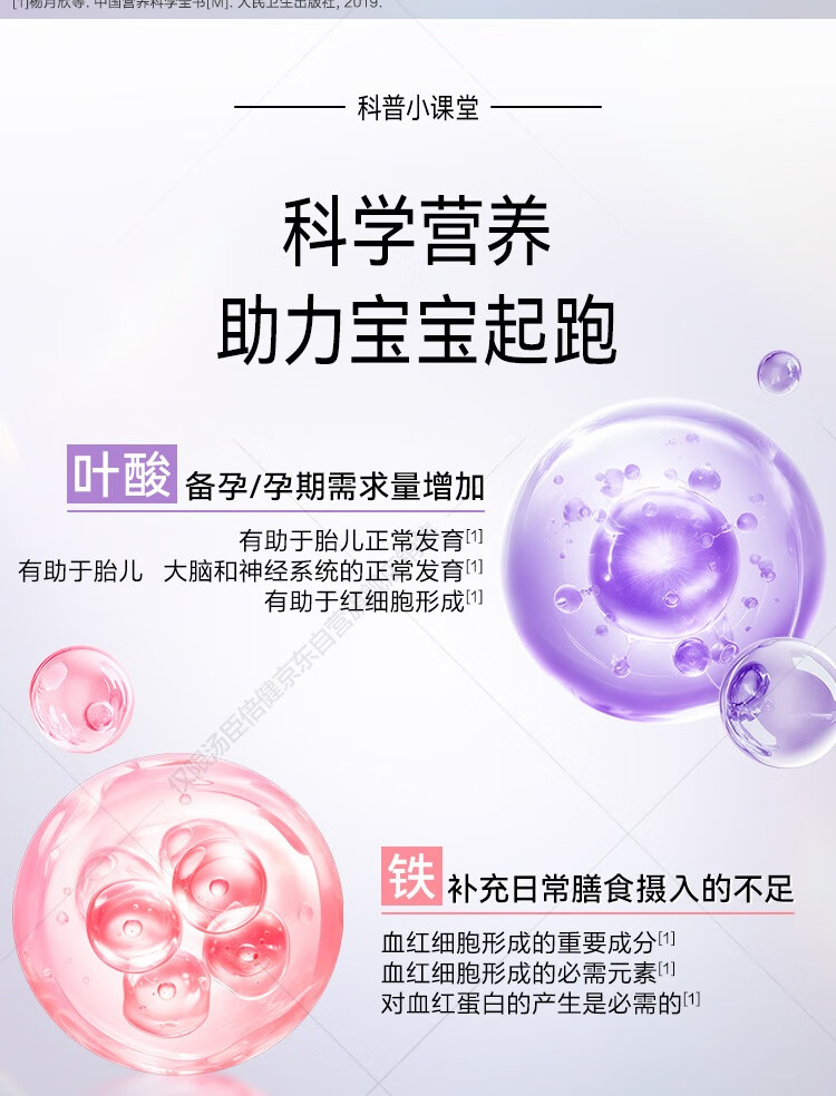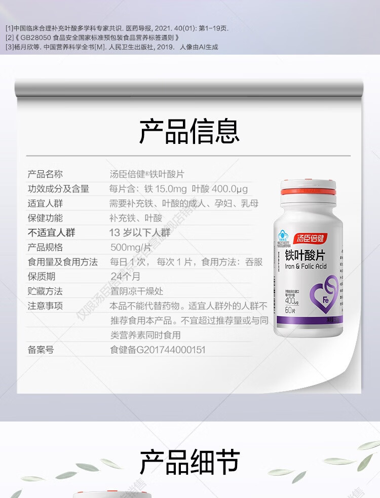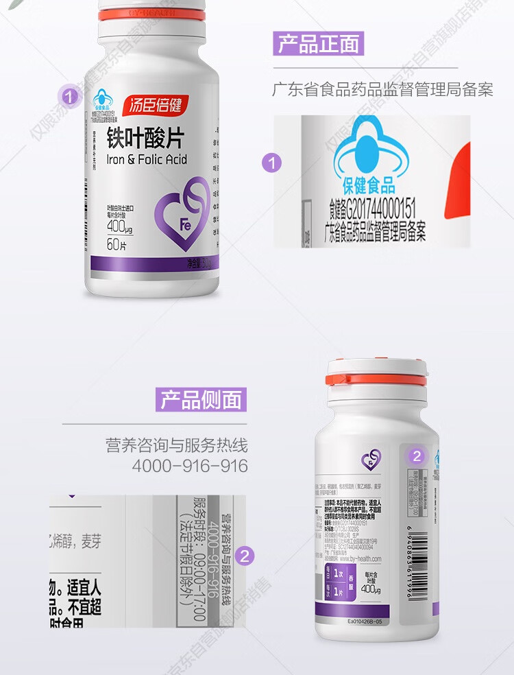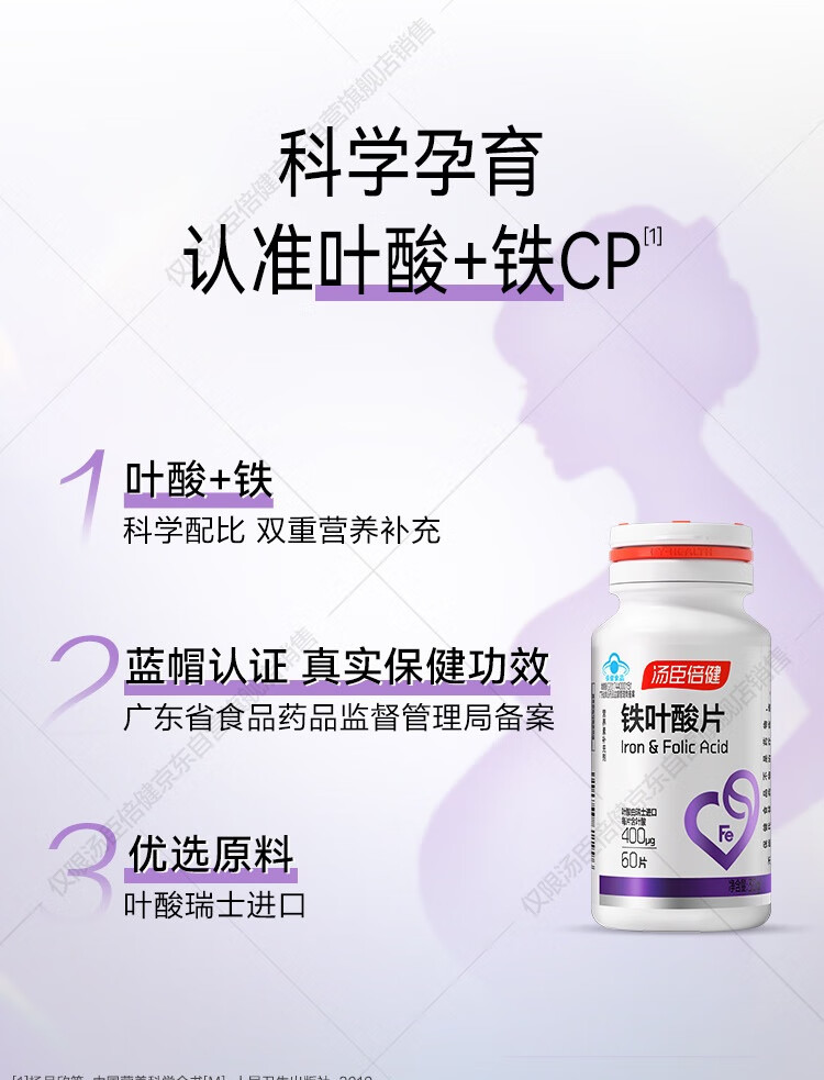 商品名称:(世星阳光)汤臣倍健 铁叶酸片60片 科学孕育 认准叶酸+铁CP 科学配比 双重营养补充 咅健营养不过量 科学含量刚刚好