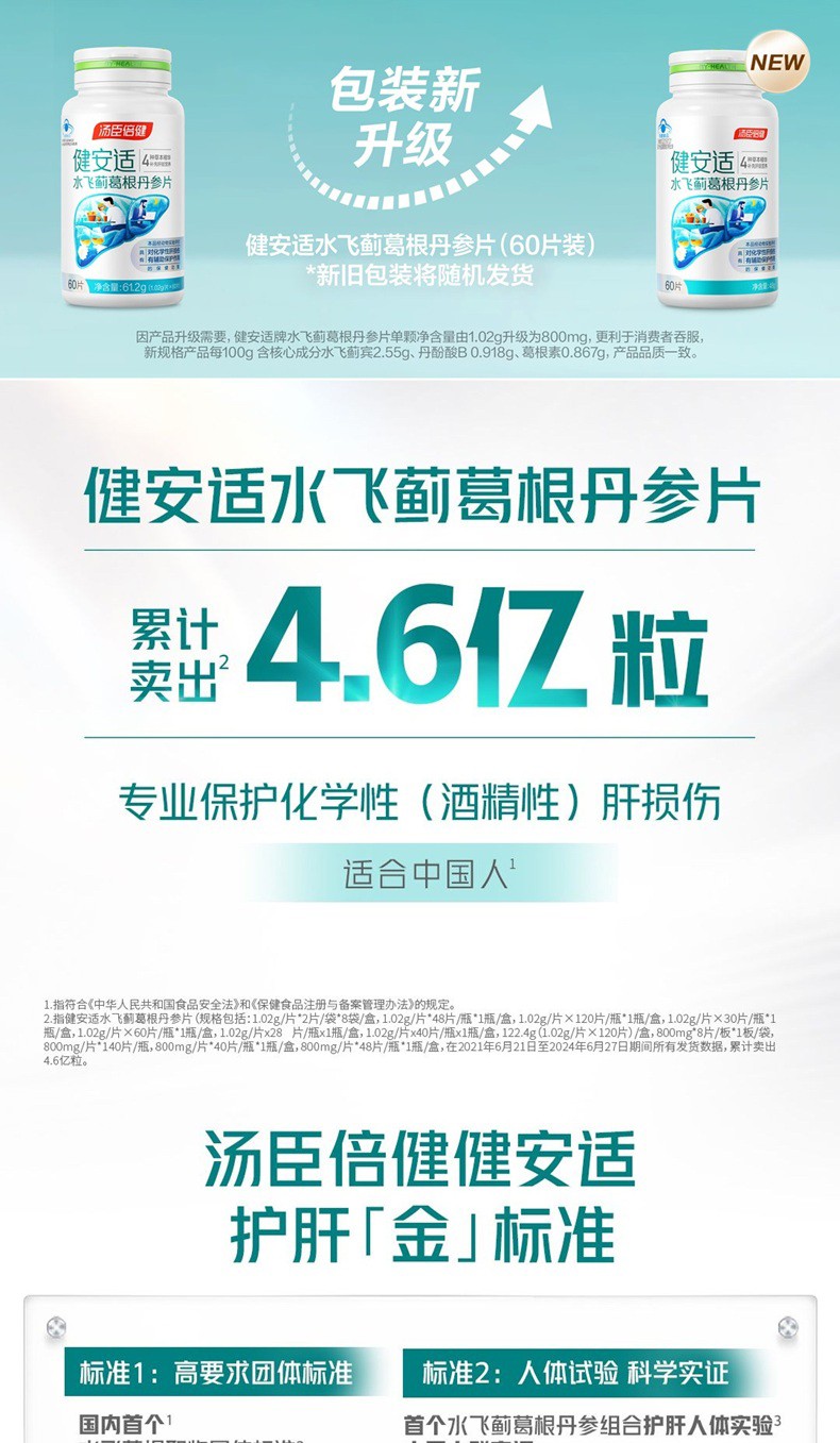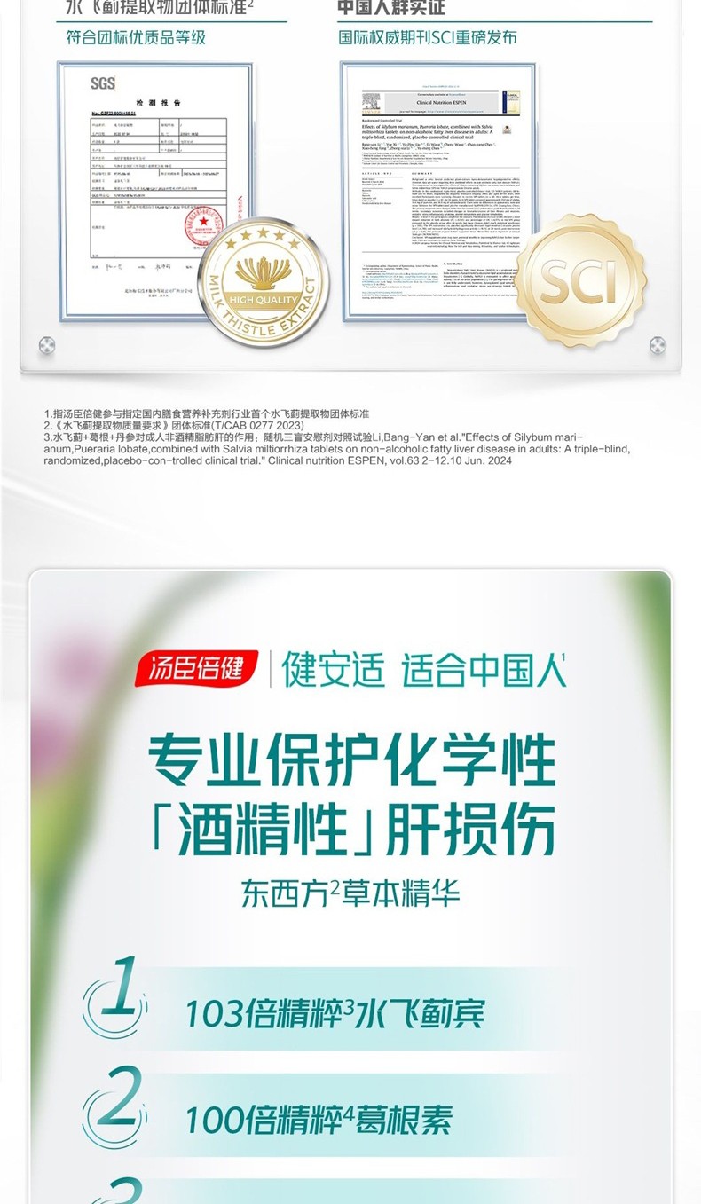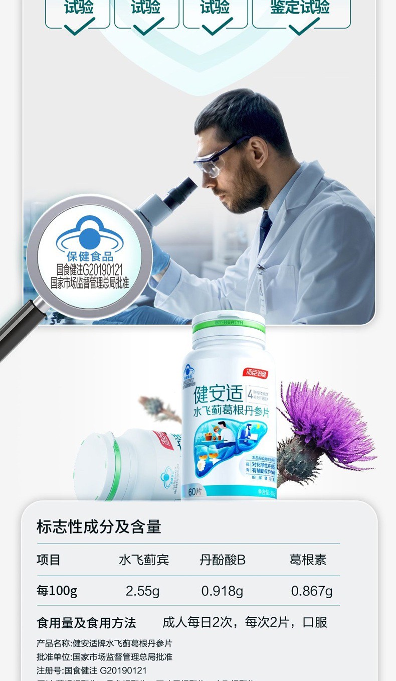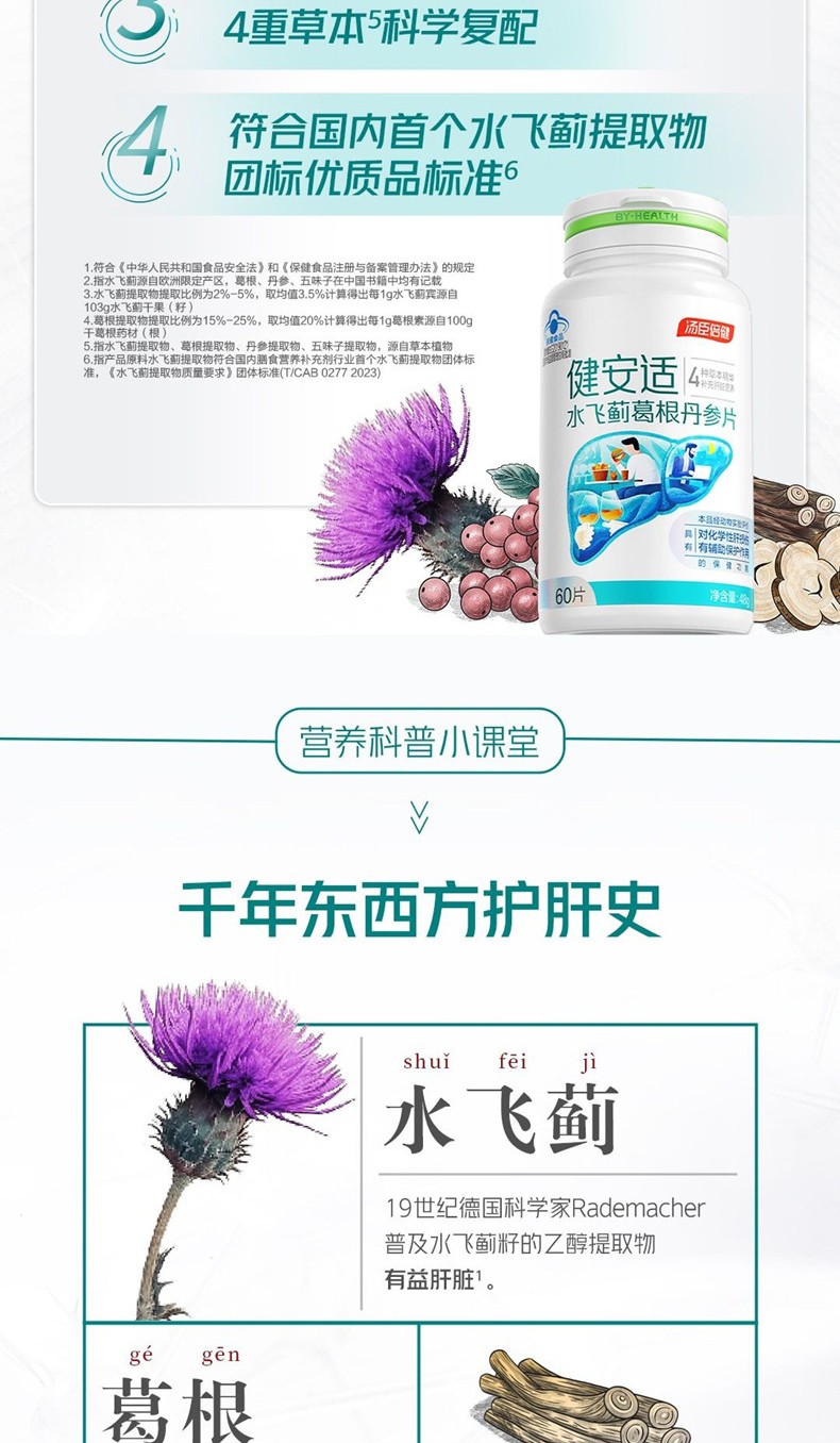 商品名称:(世星阳光)汤臣倍健 健安适水飞蓟葛根丹参片彩盒装(60片)103倍精粹3水飞蓟宾 100倍精粹4葛根素 4重草本科学复配