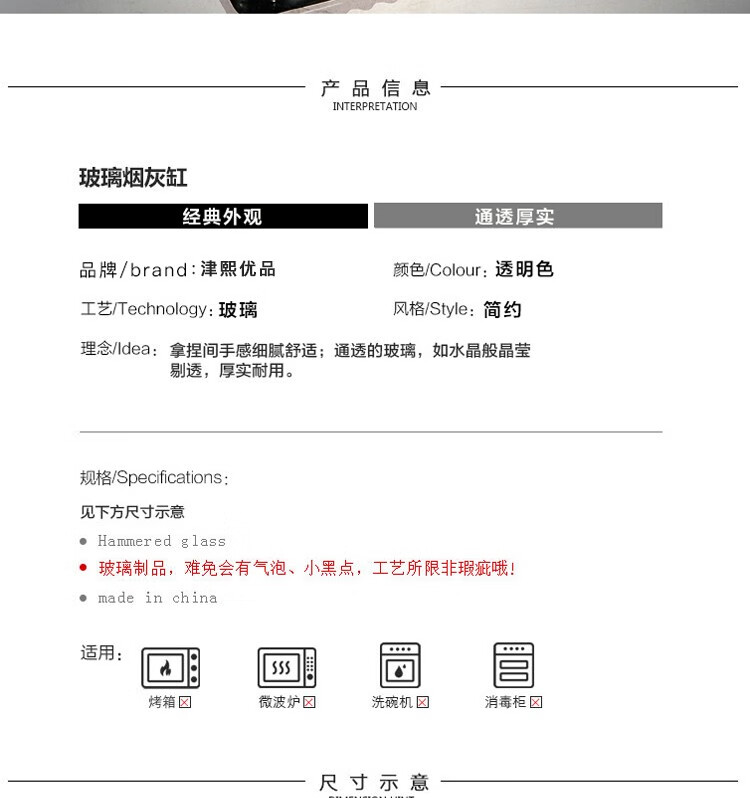 商品名称:(巨邦佑)BJ+津熙优品(Jxsuperior)玻璃烟灰缸 时尚简约型方形
