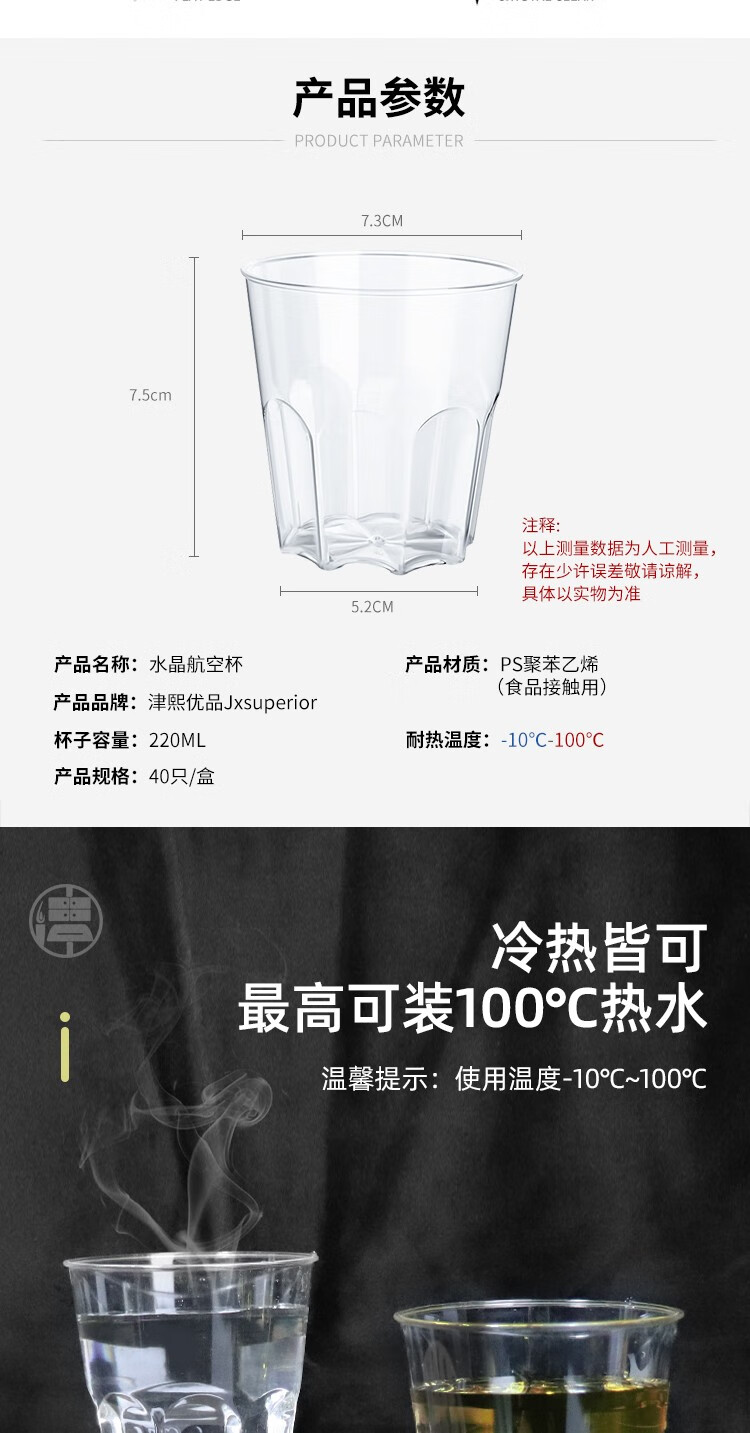 商品名称:(巨邦佑)BJ+津熙优品(Jxsuperior)钻石八角杯水晶杯 200ml*40只盒装一次性水杯