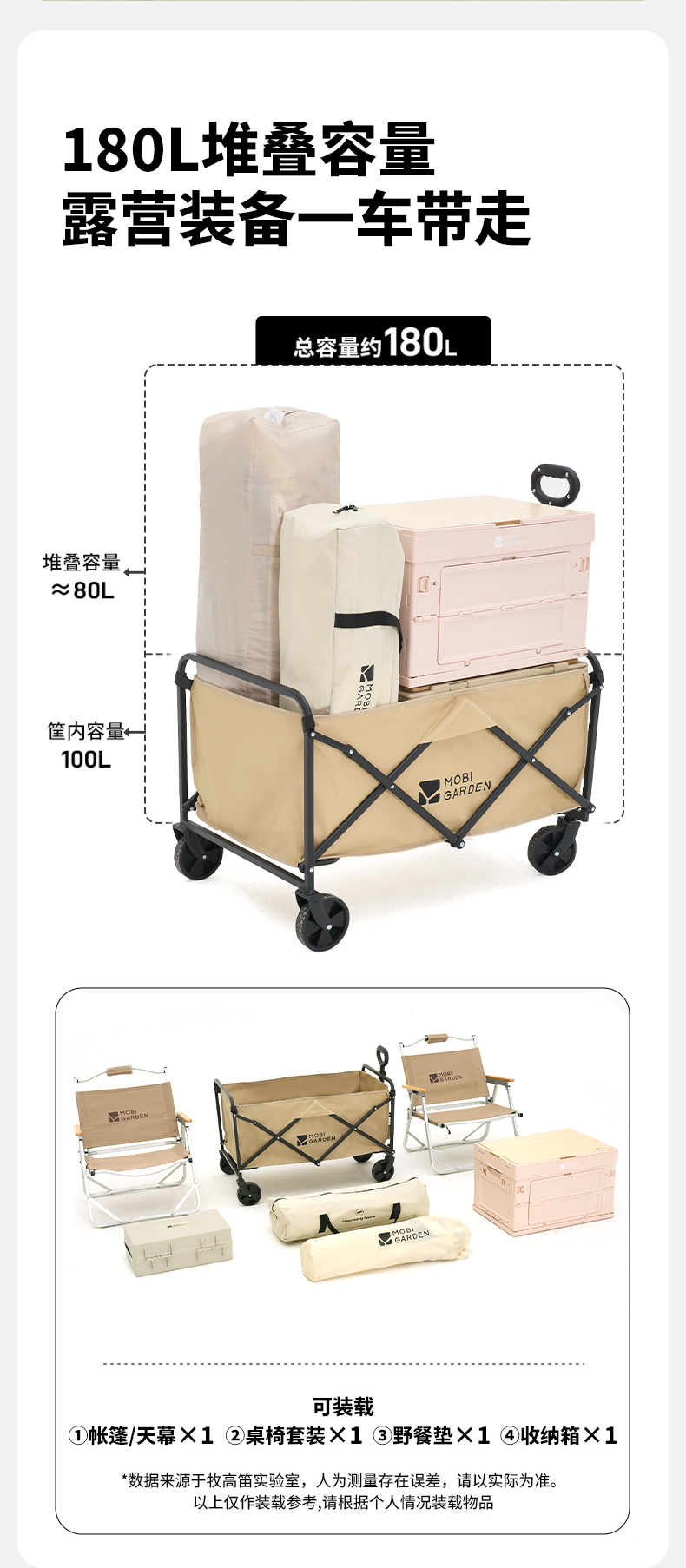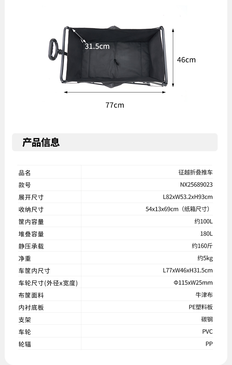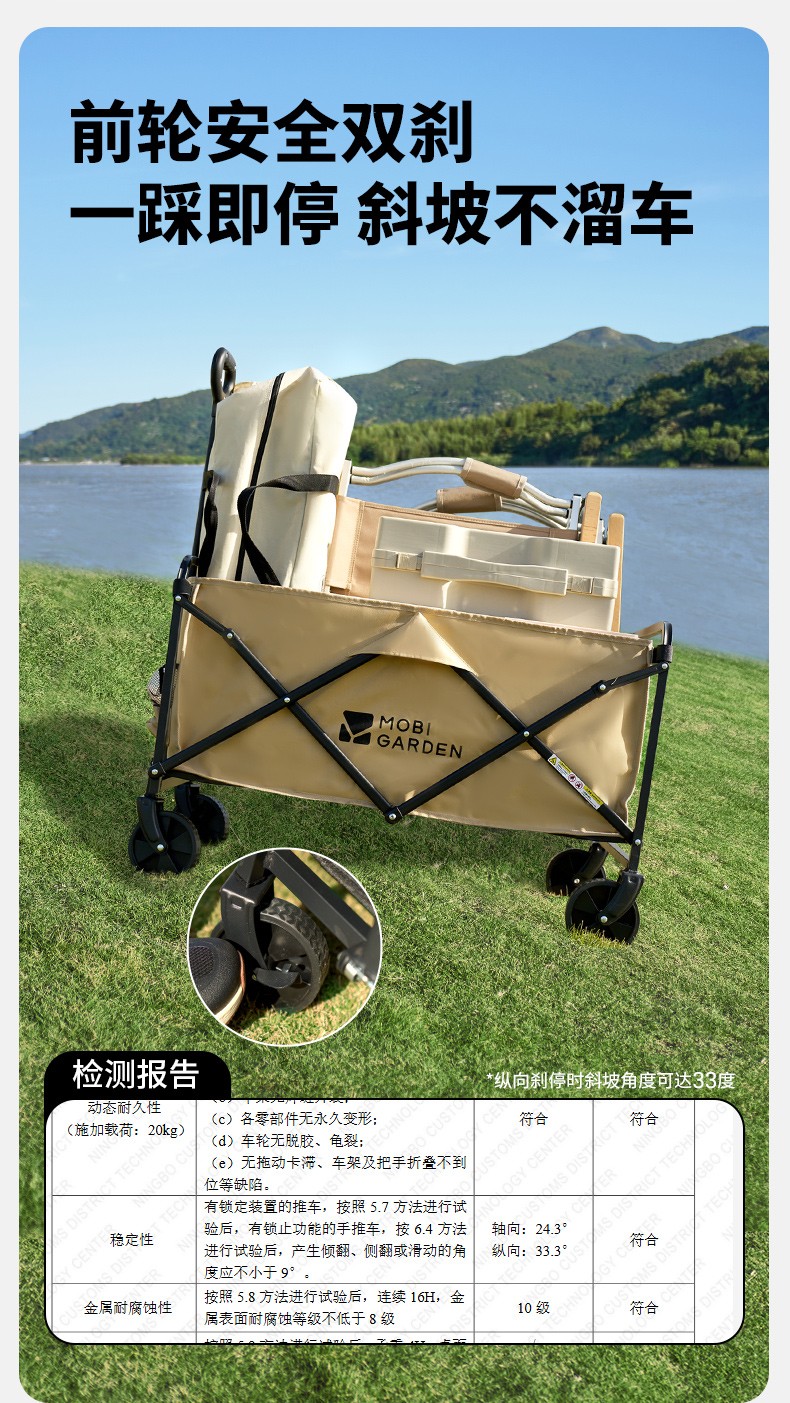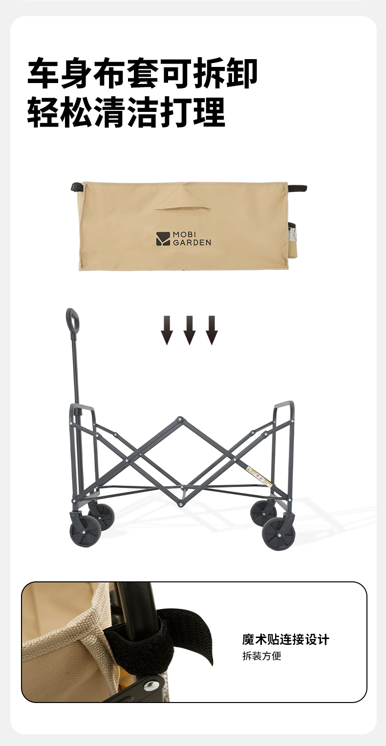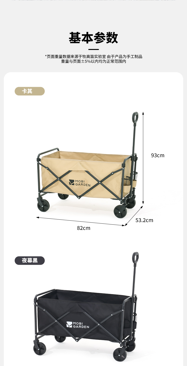 商品名称:(康恩)牧高笛征越推车100L卡其色可刹车伸缩手柄便携NX25689023