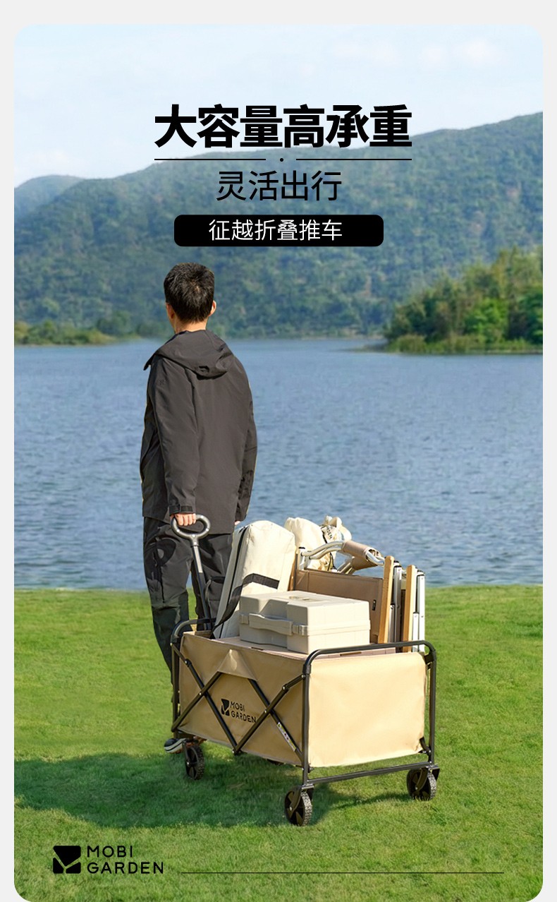 (康恩)牧高笛征越推车100L卡其色可刹车伸缩手柄便携NX25689023