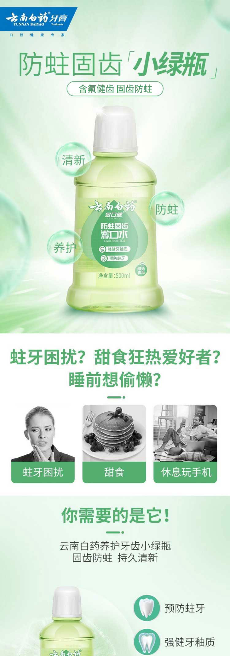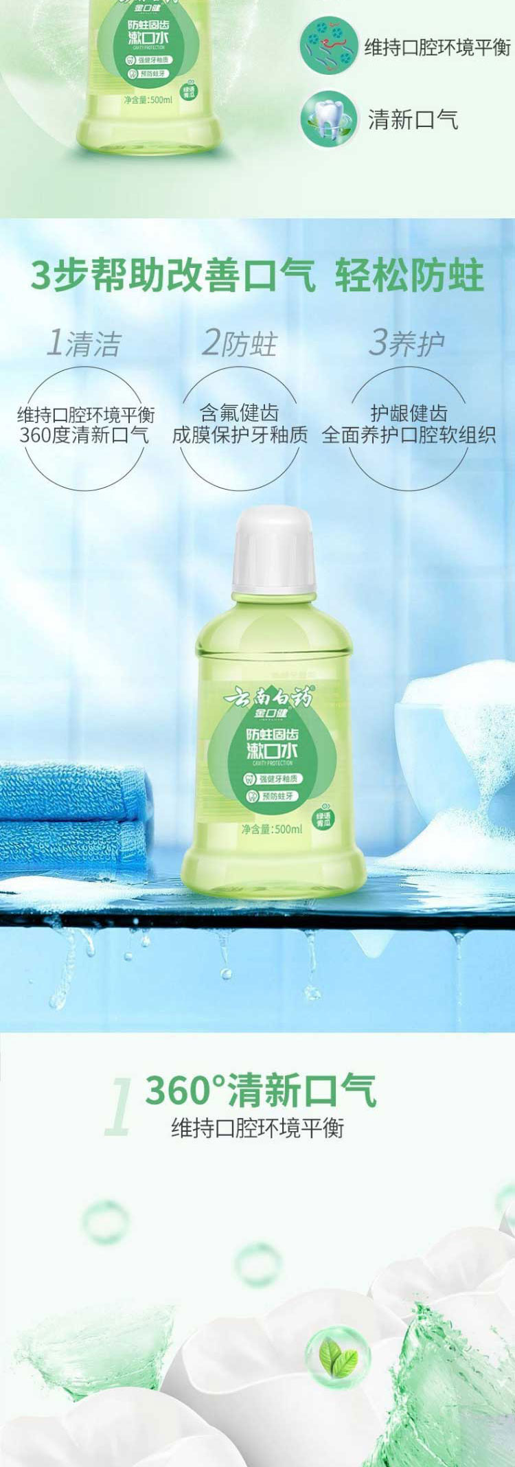 商品名称:(世星阳光) 云南白药 金口健防蛀固齿漱口水 绿语青瓜500ml*3瓶 含氟防蛀固齿清新口气青瓜味0酒精温和护口