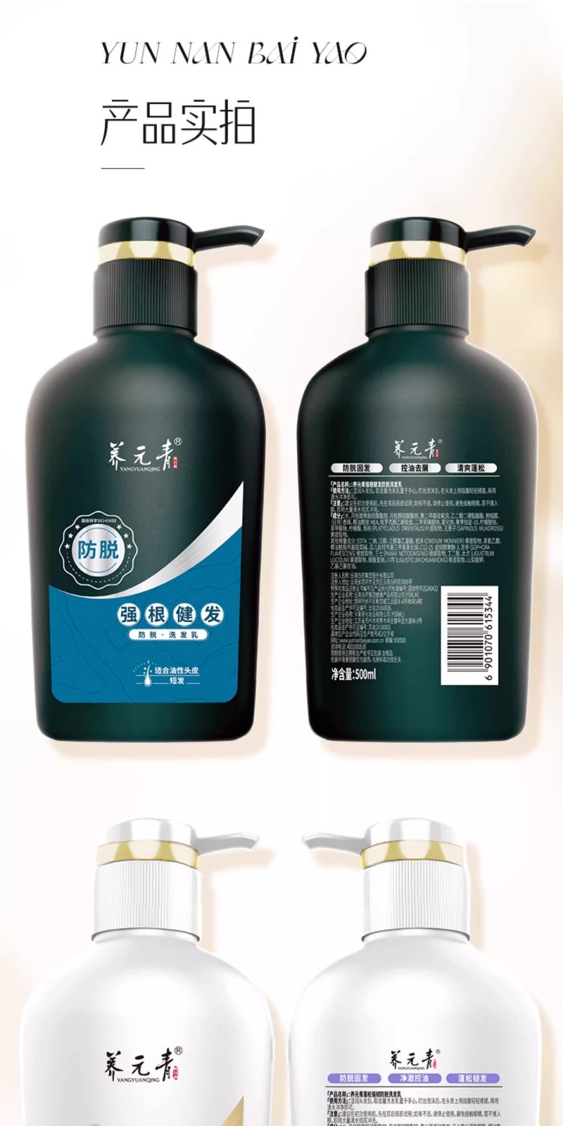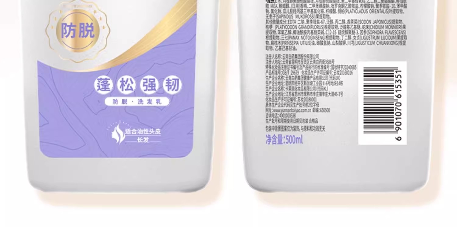 商品名称:(世星阳光)云南白药 养元青洗发水500ml 白药专研 植物防脱科技 4周防脱