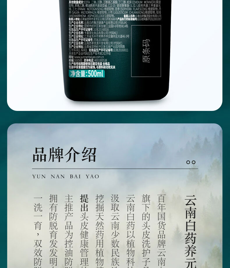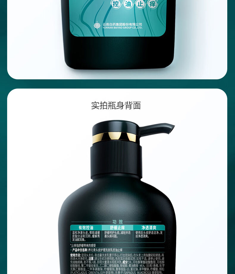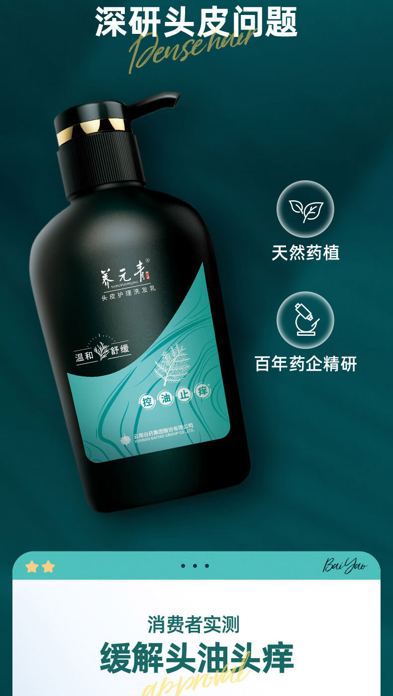 商品名称:(世星阳光) 云南白药 养元青控油洗发水 500ml 控油止痒 头皮控油 舒缓止痒
