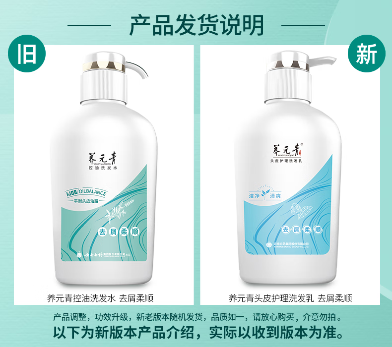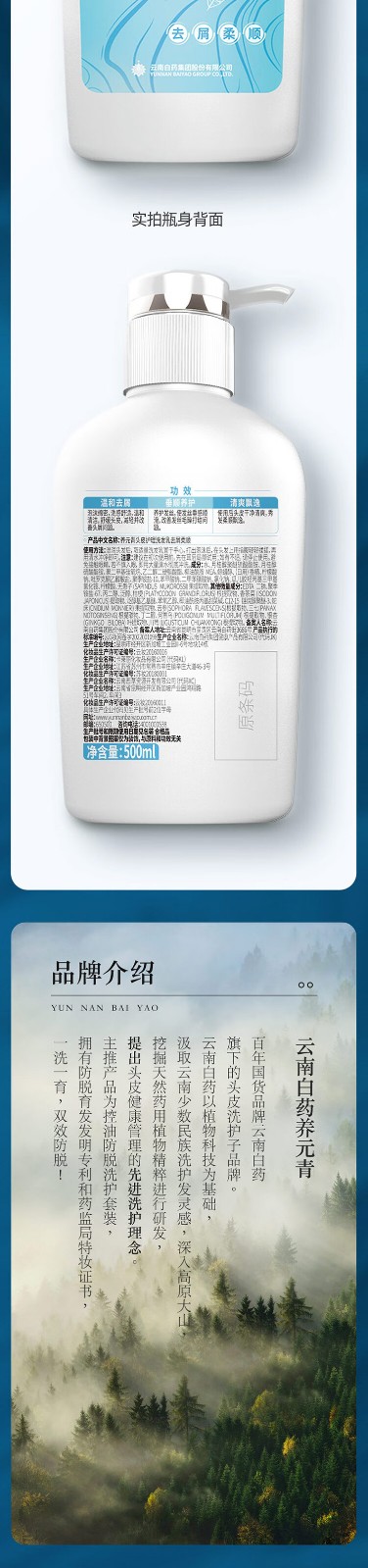商品名称:(世星阳光)云南白药 养元青控油洗发水 去屑柔顺 500ml 水感去屑 洁净清爽