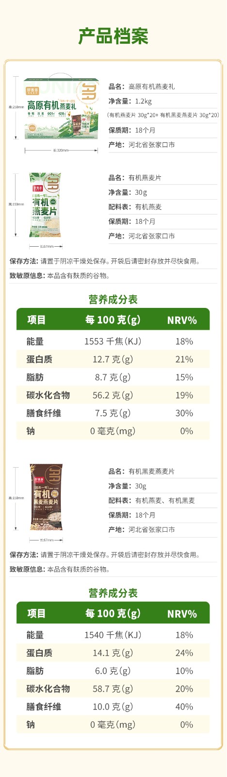 商品名称:(康恩)好麦多0添加蔗糖早餐即食高原有机燕麦礼盒1200g
