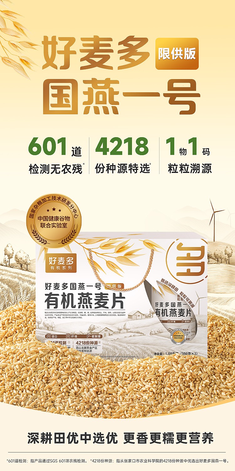 商品名称:(康恩)好麦多国燕一号有机燕麦片礼盒0无加蔗糖即食营养早餐无农残冲饮1050g