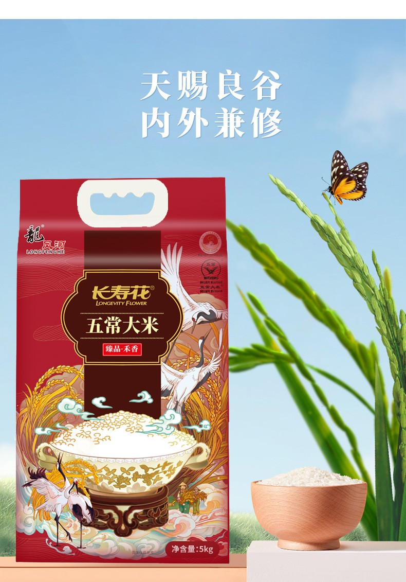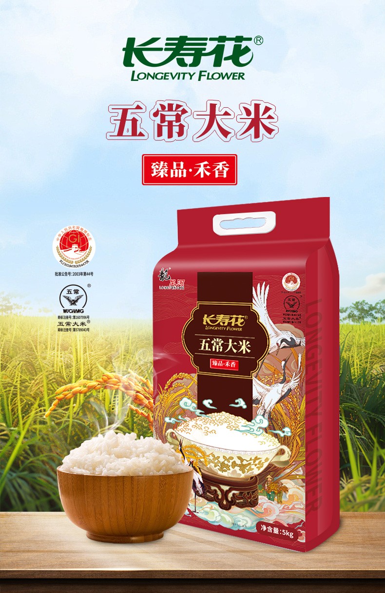 商品名称:(世星阳光)长寿花 臻品禾香五常大米 5KG 质地坚硬 颗粒圆润饱满 口感软弹香甜