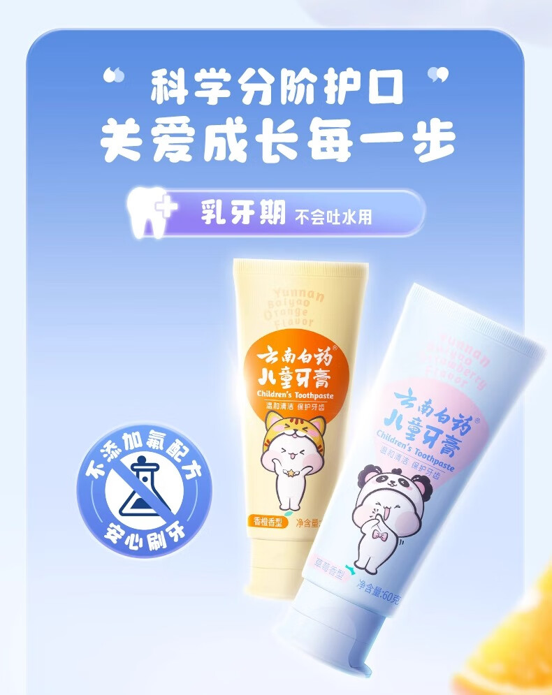 云南白药 儿童牙膏 60g (6-12岁)儿童牙膏(云宝版):