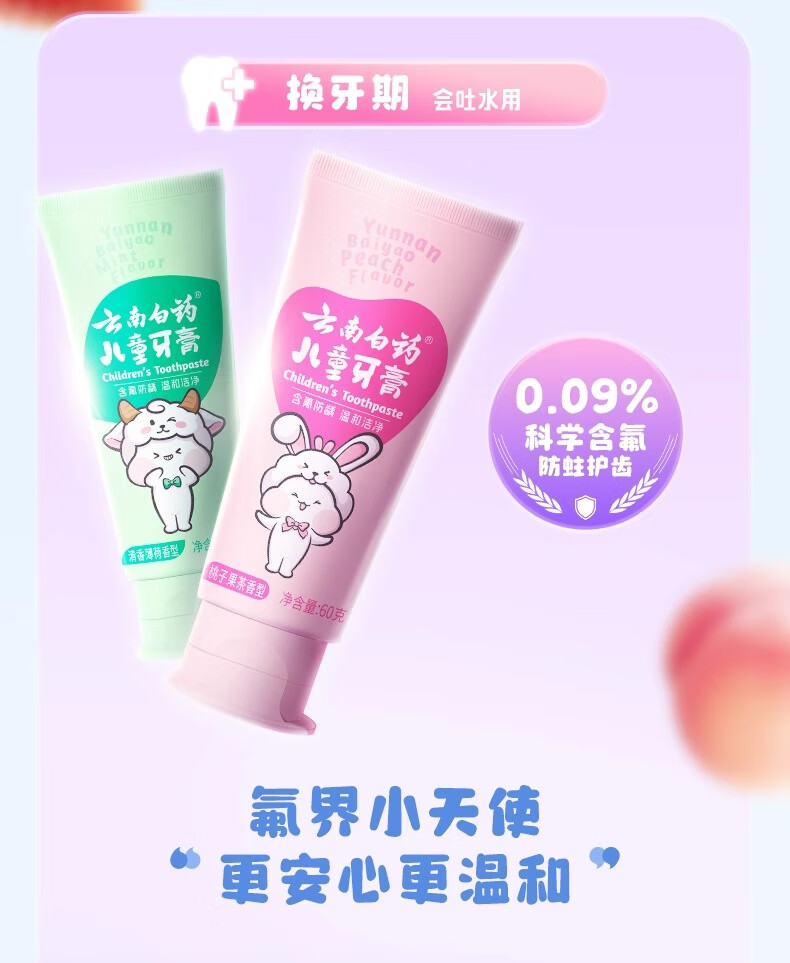 商品名称:(世星阳光)云南白药 儿童牙膏 60g (6-12岁)儿童牙膏(云宝版)