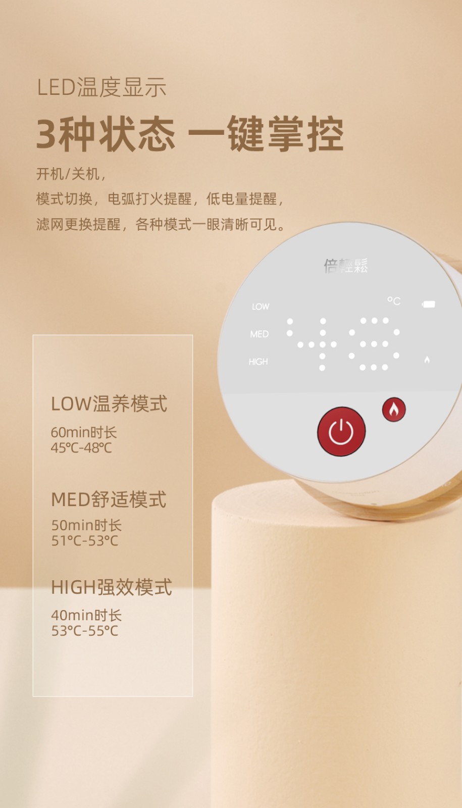 商品名称:(世星阳光)倍轻松 姜小竹艾灸盒A2mini TP-301 家用便携无烟电子艾灸盒艾灸仪