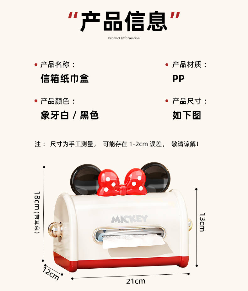 商品名称:(巨邦佑)BJ+迪士尼纸巾收纳盒 信箱纸巾盒圆润开口多色可选