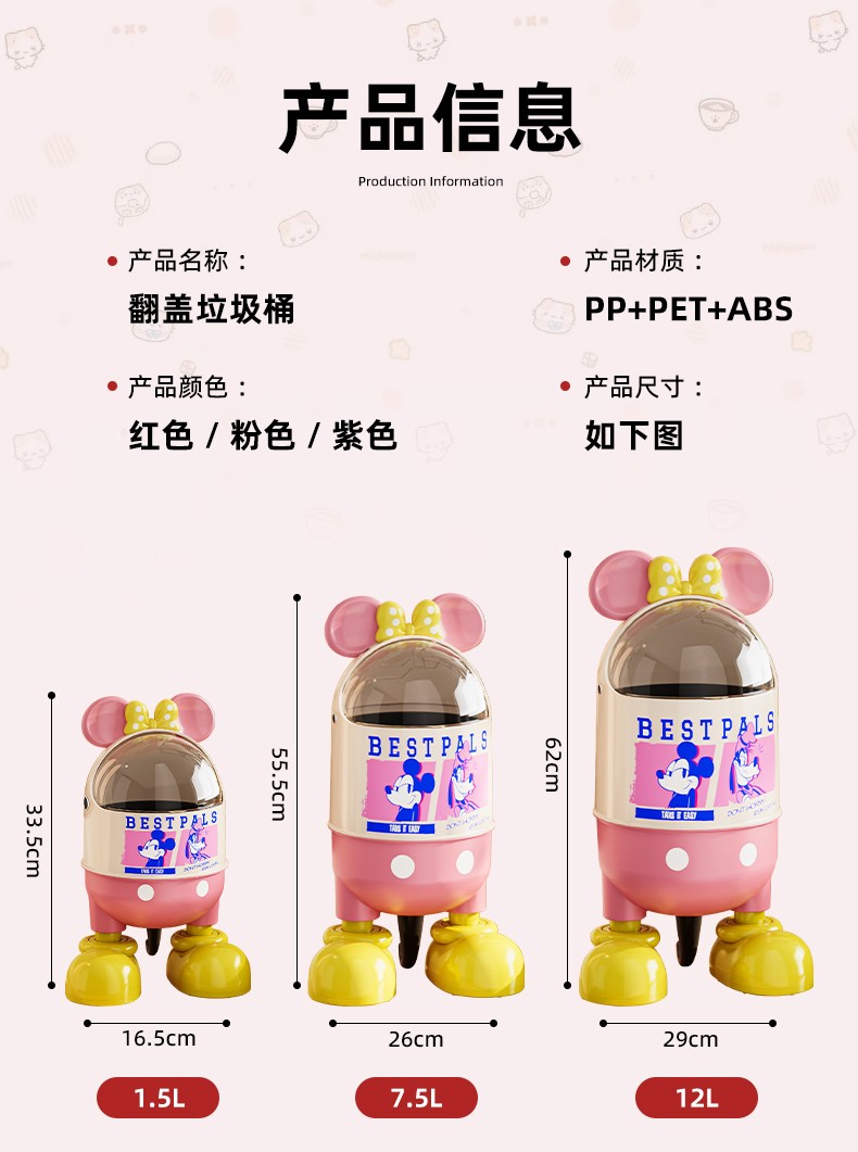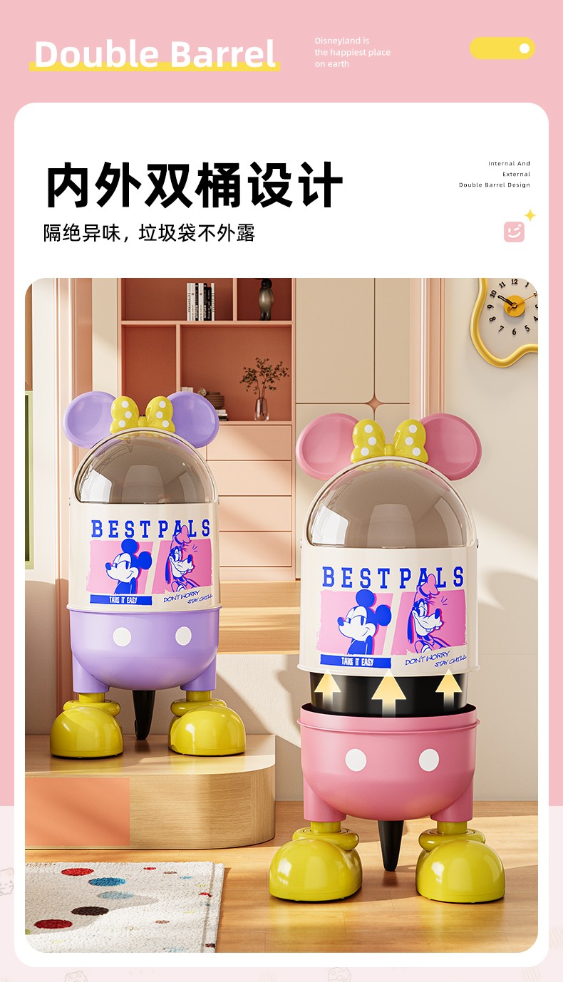 商品名称:(巨邦佑)BJ+迪士尼卡通垃圾桶 翻盖式垃圾桶超大容量内外双层翻盖设计稳固不倒百搭家具颜值好物